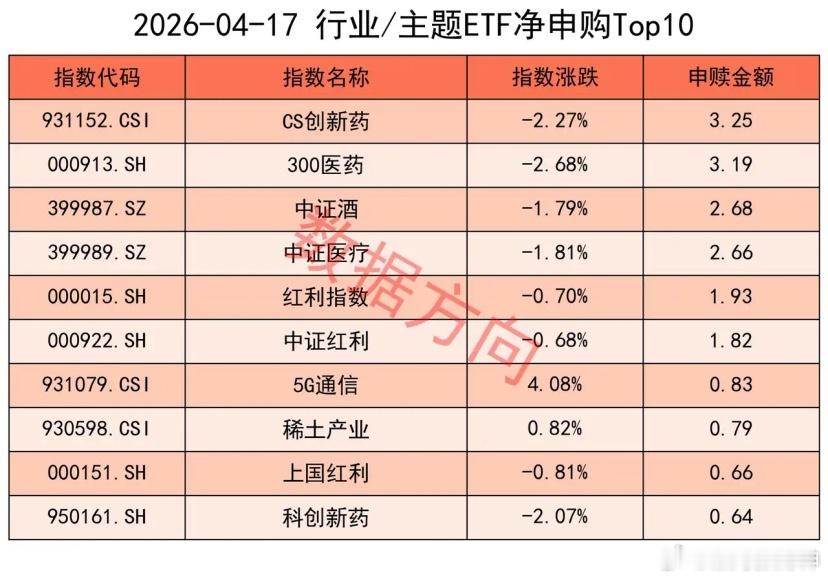 CS创新药指数(3.25亿)、300医药指数(3.19亿)、中证医疗指数(2.66亿)、科创新药指数(0.64亿),一起进入申购榜。