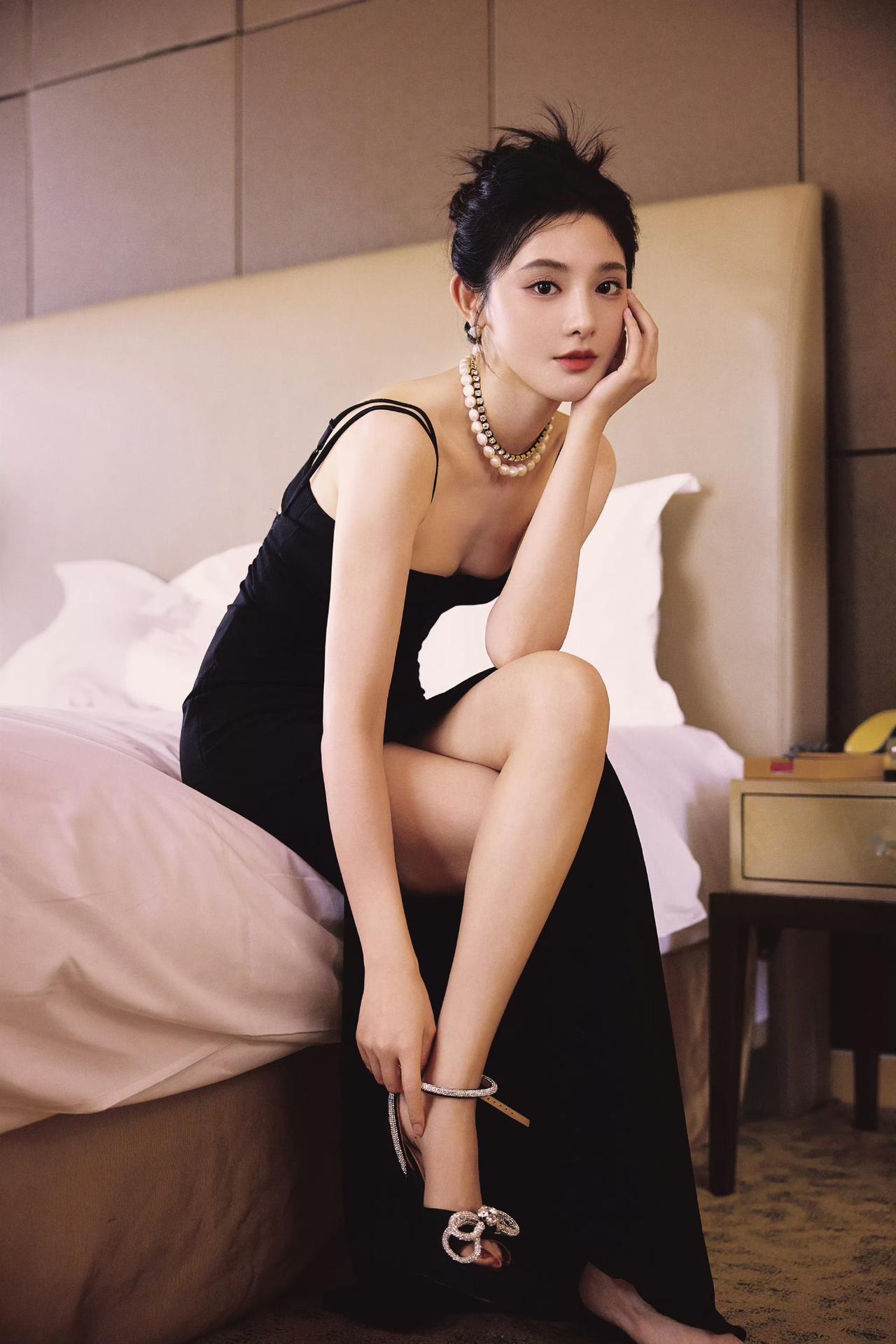 彭小苒一组好看的黑色抹胸吊带裙美腿[奸笑] 彭小苒