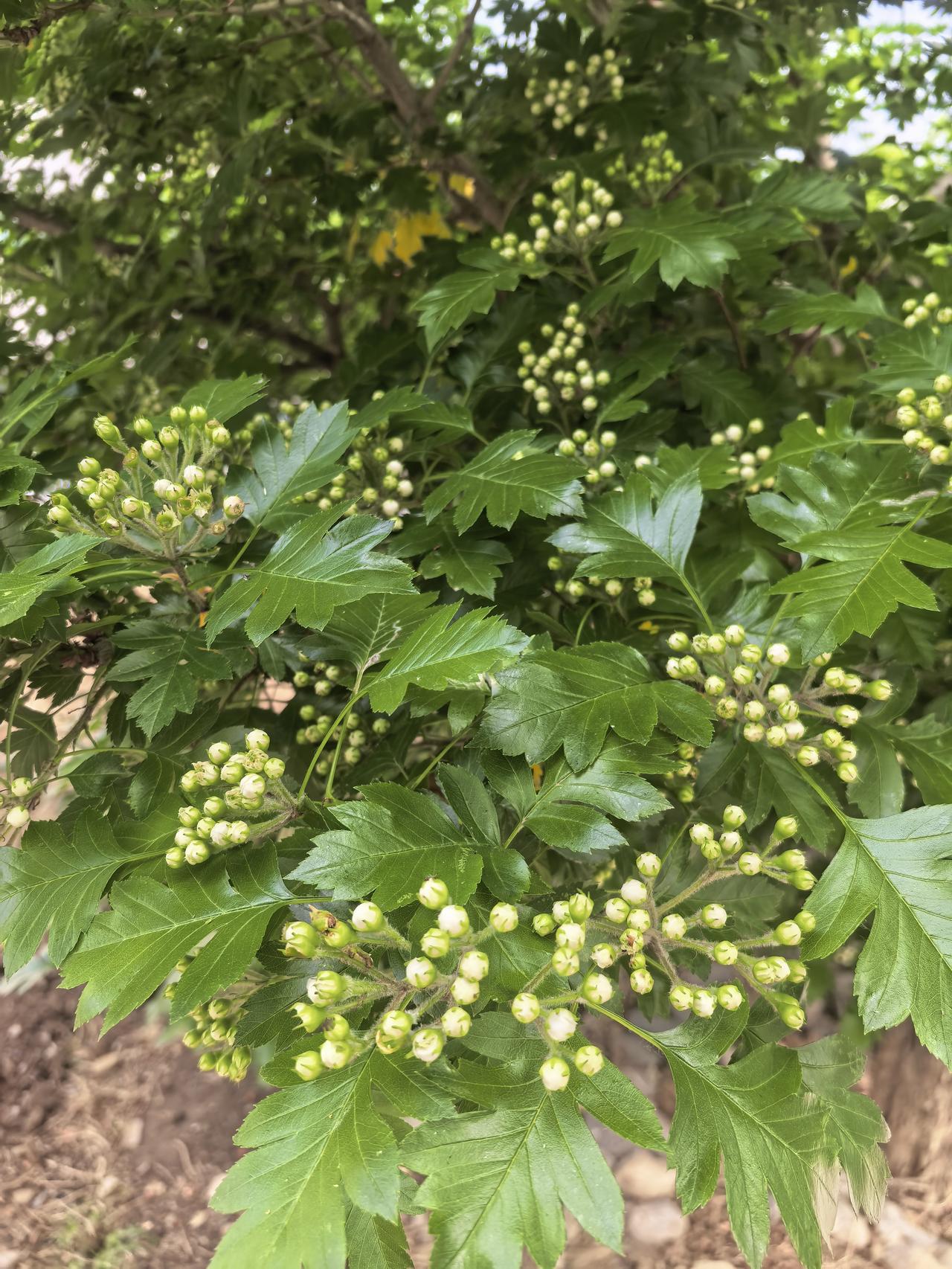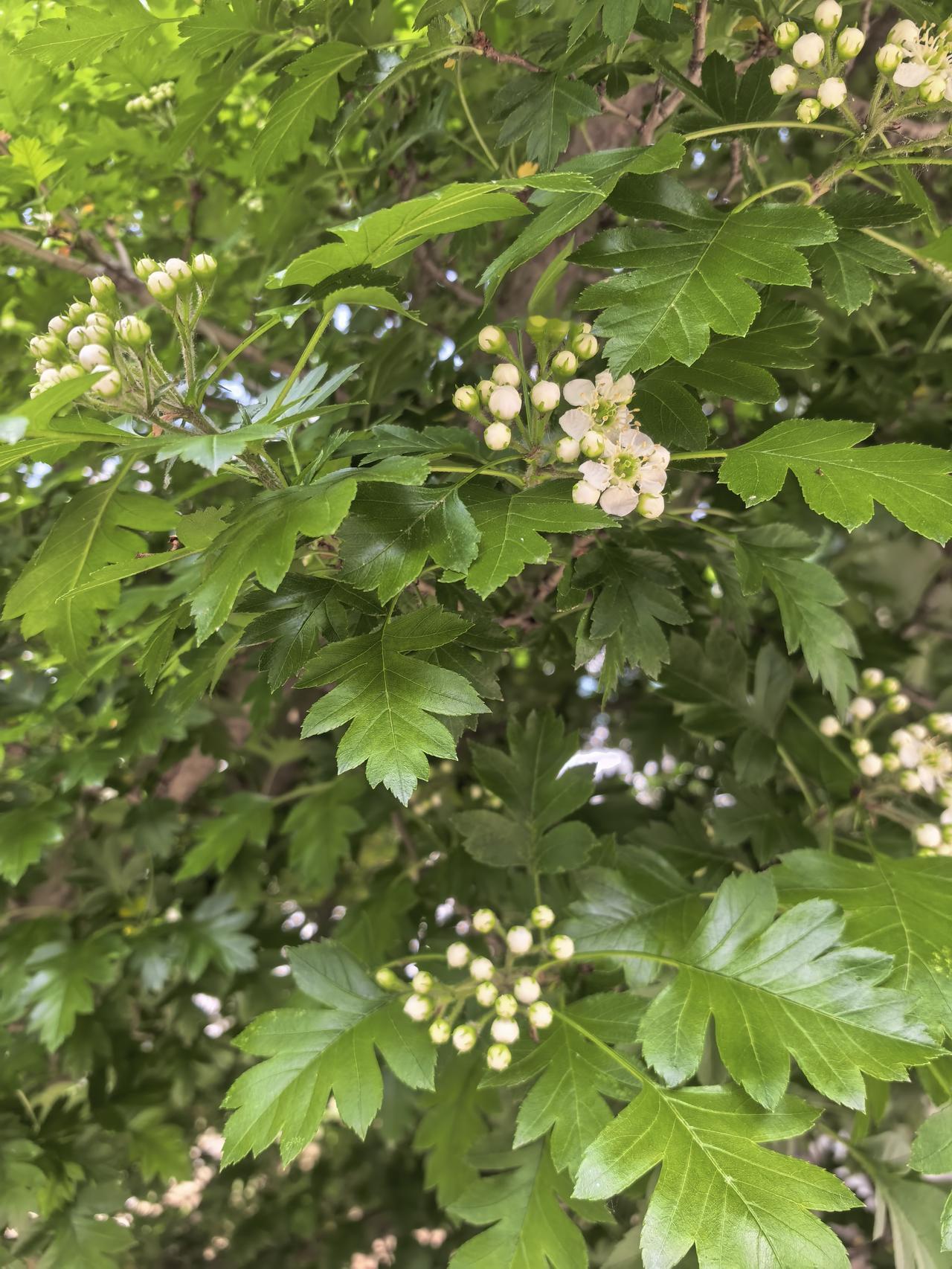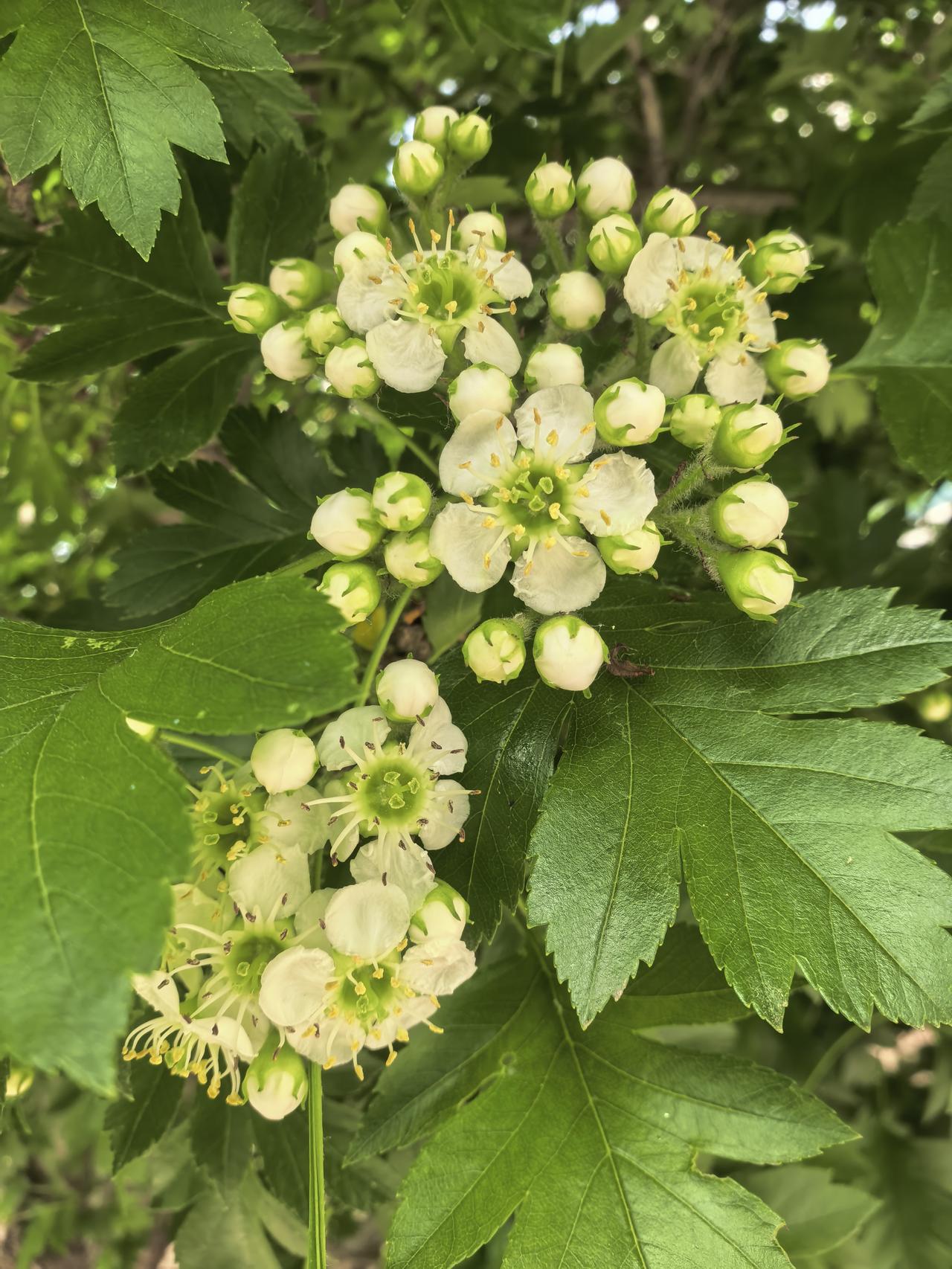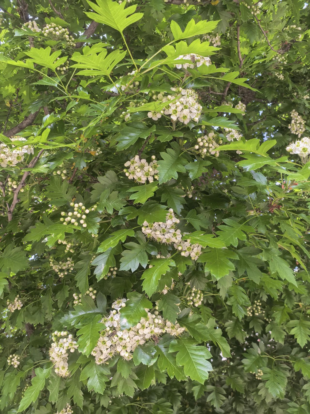 和珍珠一样的花朵,挂满一树,把蜜蜂都吸引来了,今年这花也太多了吧,肯定又结果不少。这是野山楂树,果子小,没有啥肉,里边全是果核,就是一层薄皮。年年也没人管它,它自己肆意的疯狂生长,越是天天浇树施肥的果树越不好好长,它倒好顶着风使劲长,三、四年的时间树干长的比盆还粗。这颗树果子没人吃,年年自然脱落,去年偶尔有人过来摘几个泡水喝,说是为了降脂。我是没有摘过,一点都不好吃。