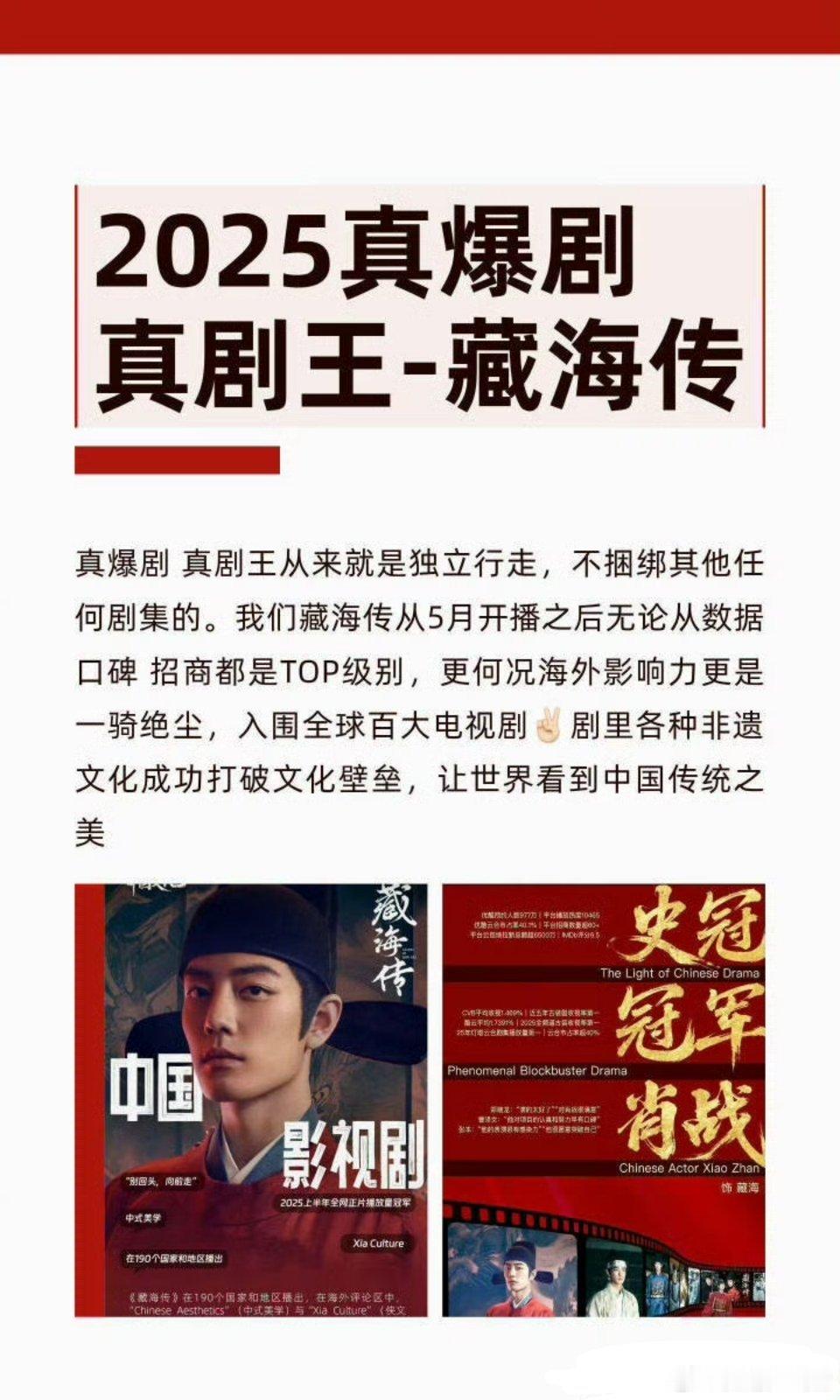 台湾中视称藏海传是近五年最强古装剧那必须的!真爆剧,真剧王,国产剧巅峰之作!肖战凭此拿到了最年轻的视帝,藏海传必然横扫奖项啊!