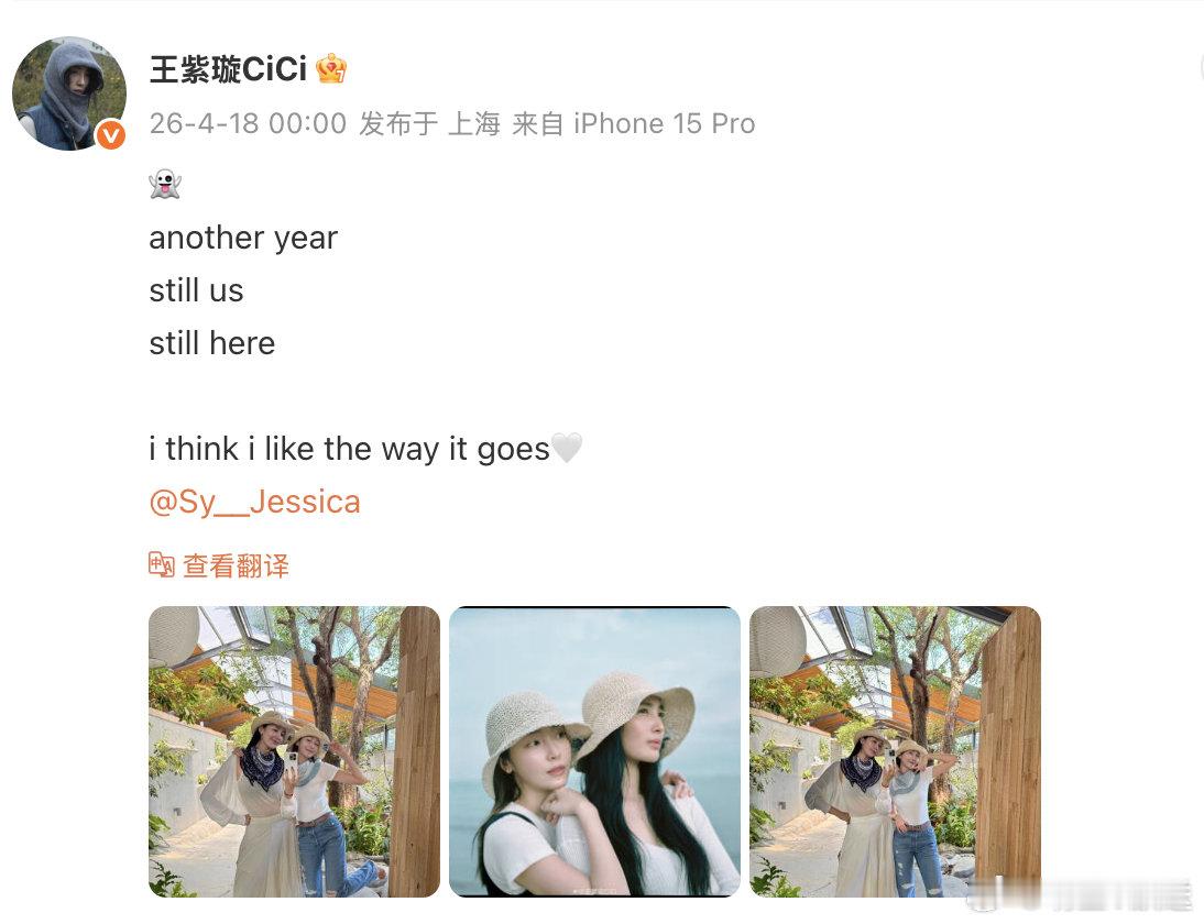 王紫璇卡点为Jessica庆生王紫璇Jessica宛如做了夫妻一般 谁懂啊😭 王紫璇又准时零点给Jessica庆生了!晒合照配文“another year still us still here”,每年雷打不动的专属仪式感,网友都调侃俩人甜得像做了夫妻一样!