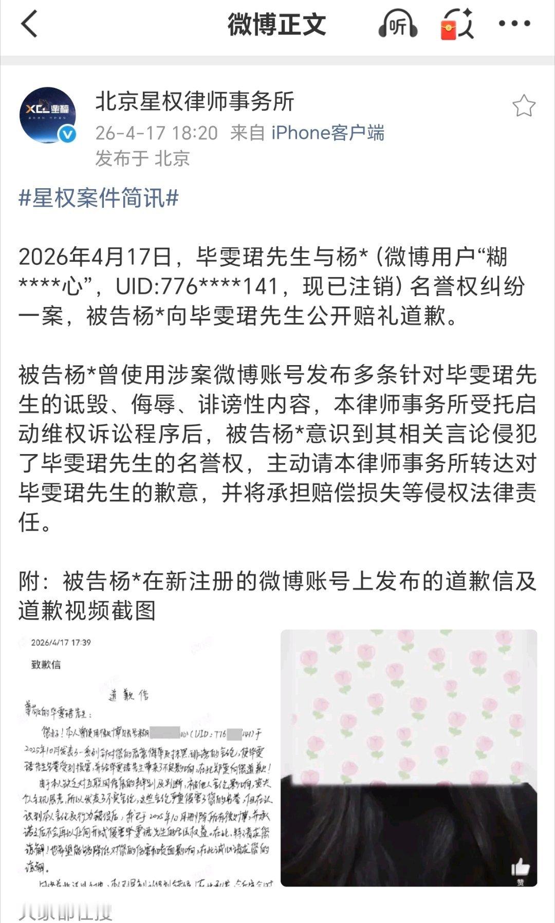 毕雯珺告黑成功,黑粉手写道歉信录视频道歉并赔偿互联网非法外之地,支持毕雯珺维权👊👊👊不会又是那家粉丝吧?