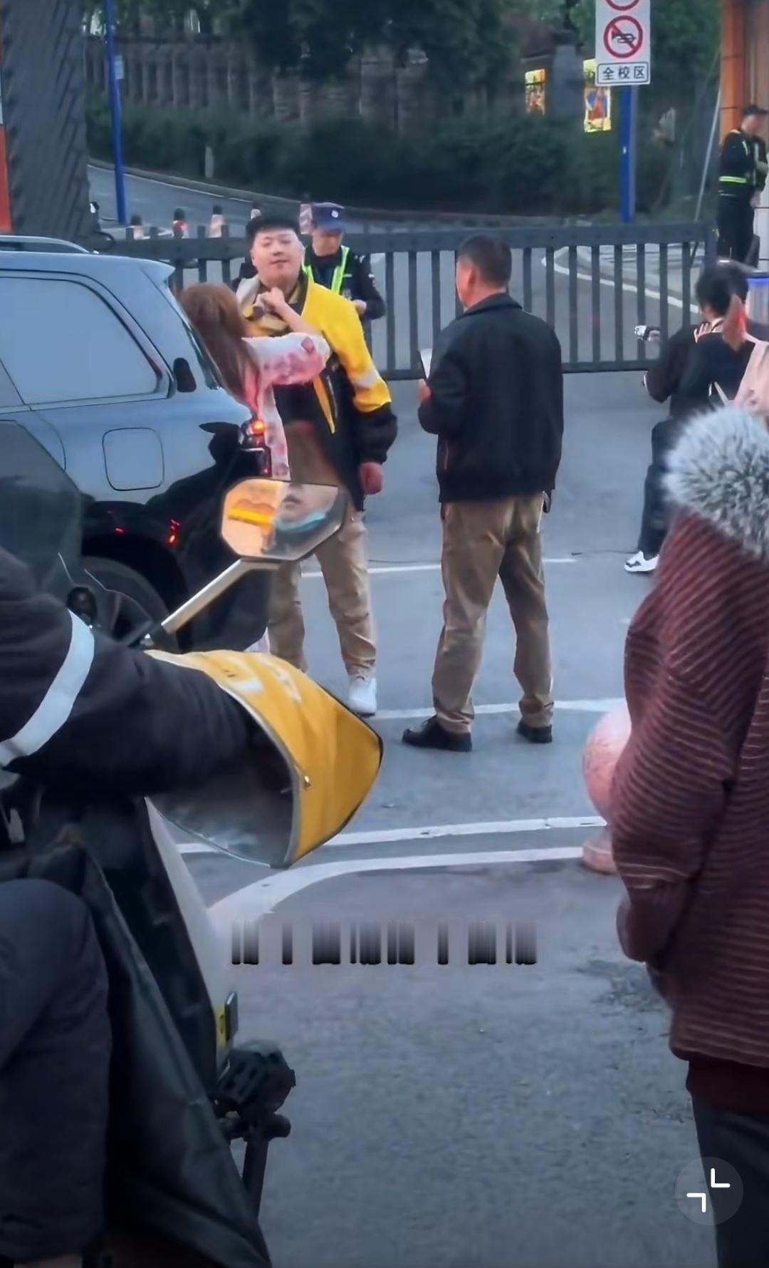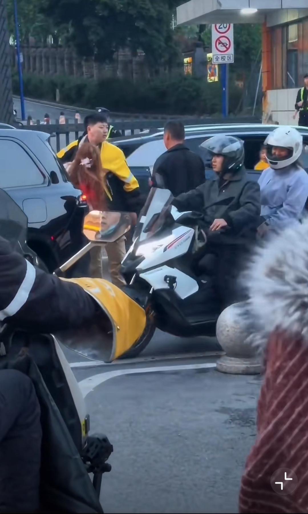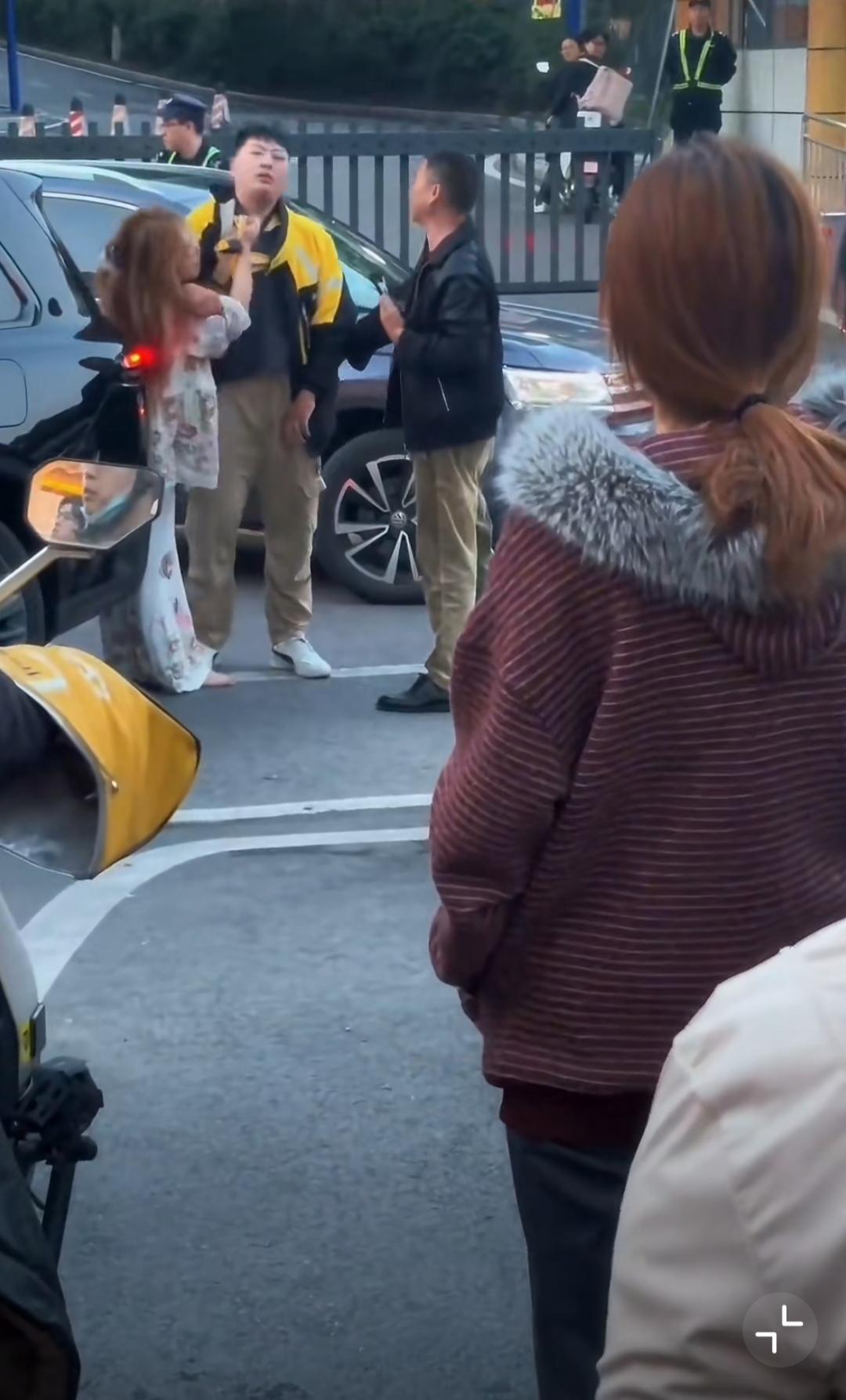 4月14日,重庆,女的开车和外卖小哥剐蹭,女司机揪着外卖小哥衣领不放各种辱骂,边上黑衣男在外卖小哥被揪衣领时不劝,小哥忍无可忍回击,他就拉偏架,黑衣男说女的对小哥没有生命威胁…… [抠鼻]送外卖事故 重庆身边事 重庆爆料