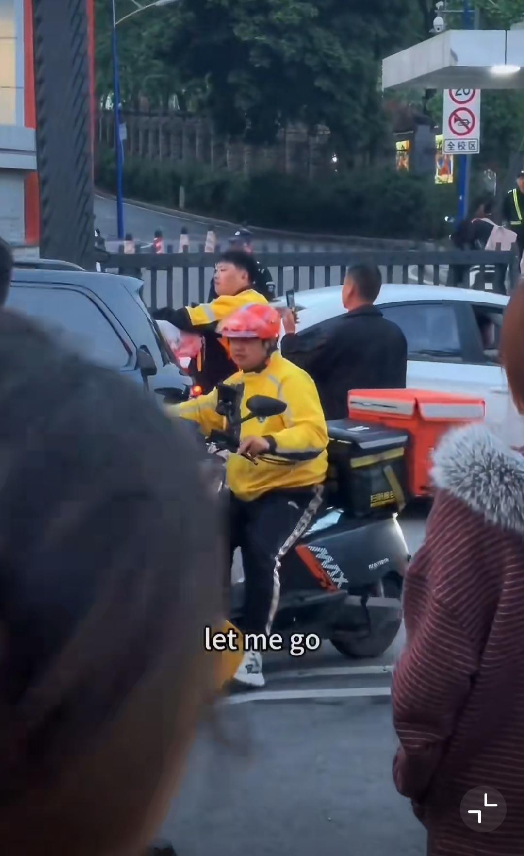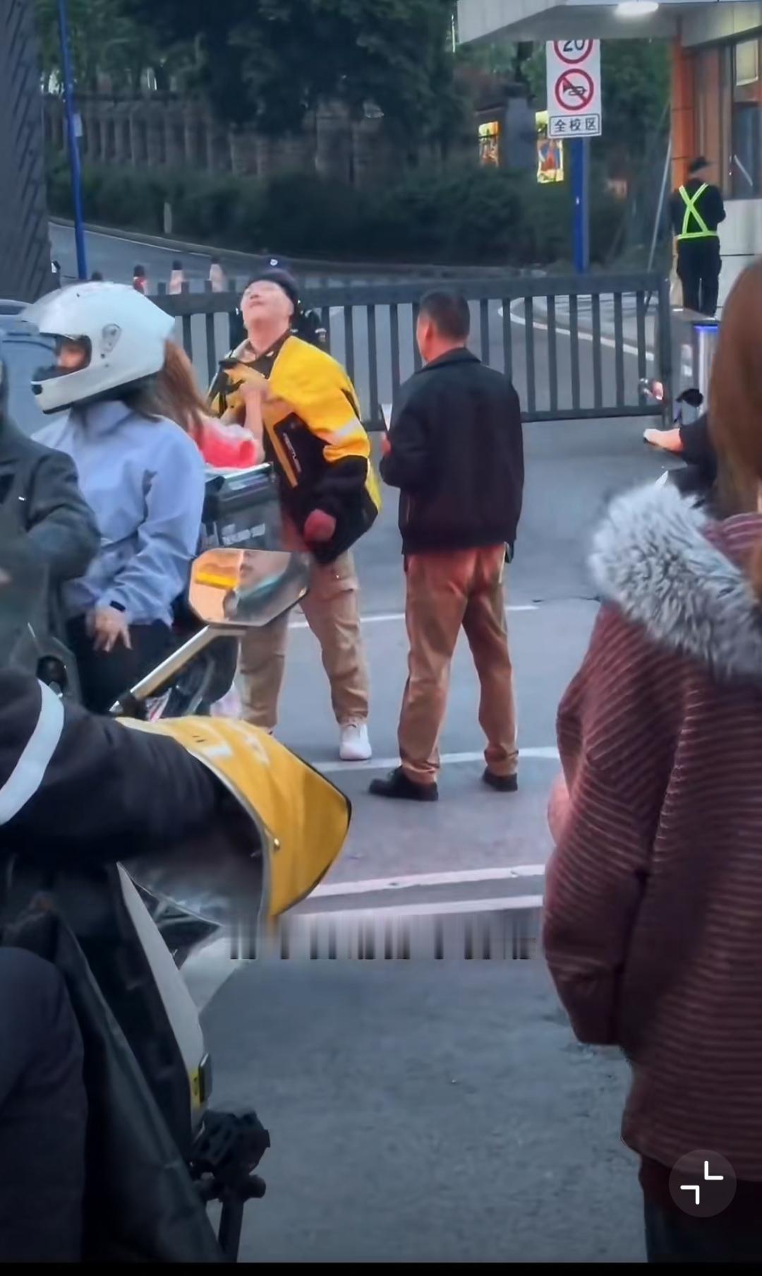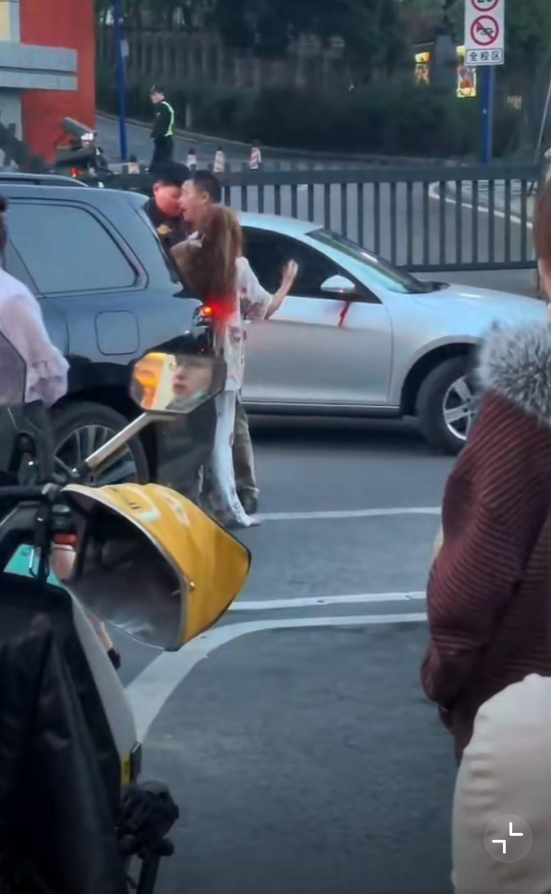 4月14日,重庆,女的开车和外卖小哥剐蹭,女司机揪着外卖小哥衣领不放各种辱骂,边上黑衣男在外卖小哥被揪衣领时不劝,小哥忍无可忍回击,他就拉偏架,黑衣男说女的对小哥没有生命威胁…… [抠鼻]送外卖事故 重庆身边事 重庆爆料