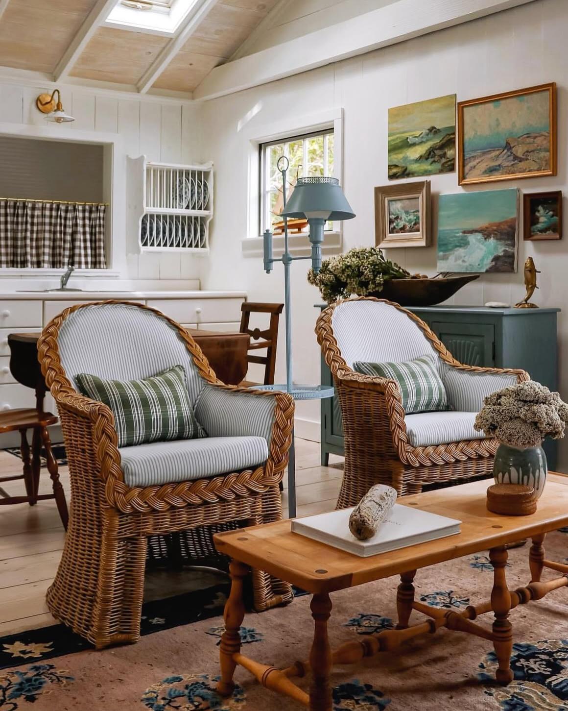 常见开放式布局、木质护墙板、百叶窗等元素,兼具通透感与复古氛围