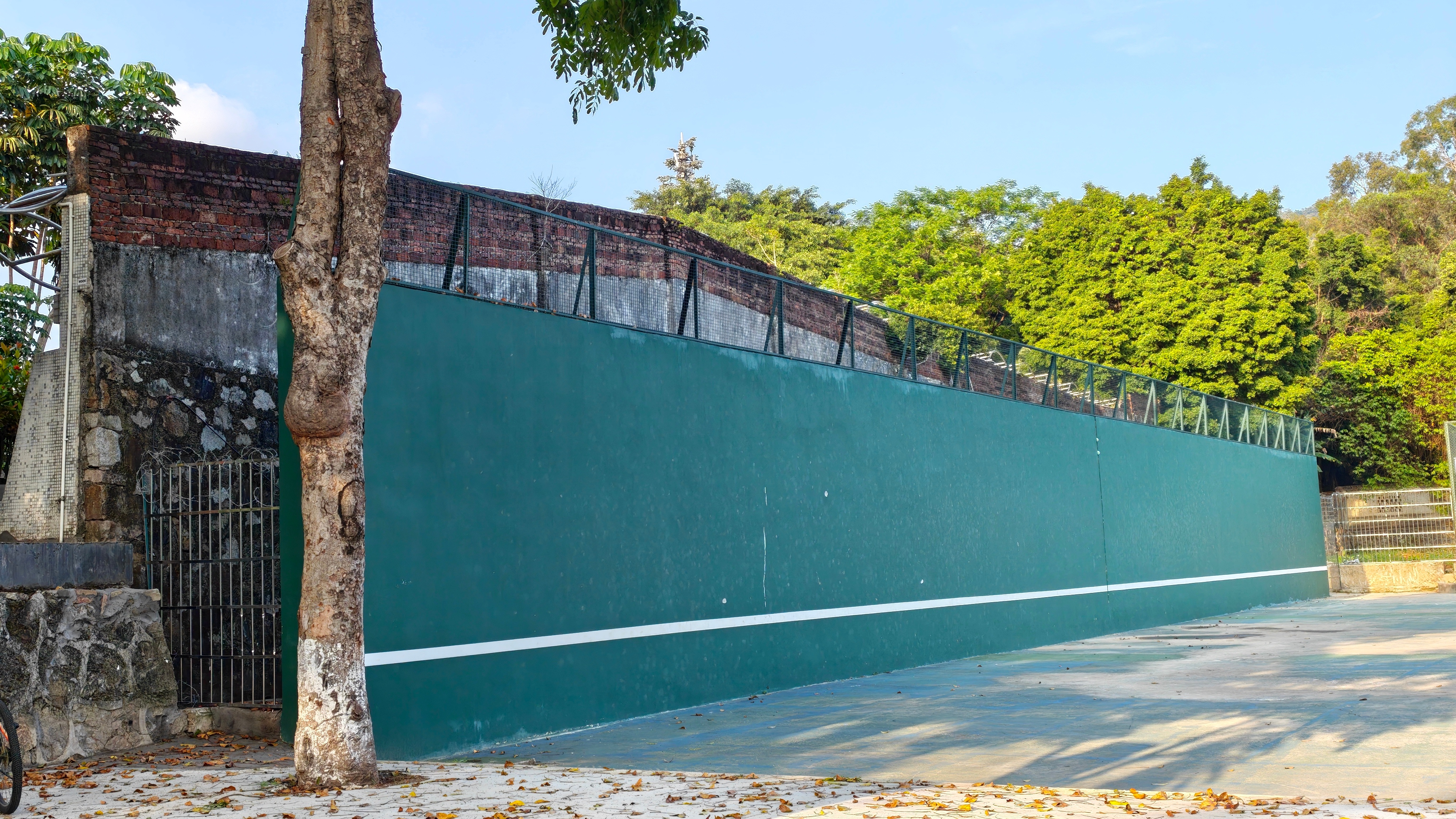 你外翻新了网球墙,以后再也不用怕把球打飞了 因为墙后面是条臭水沟,天杀的以前学球