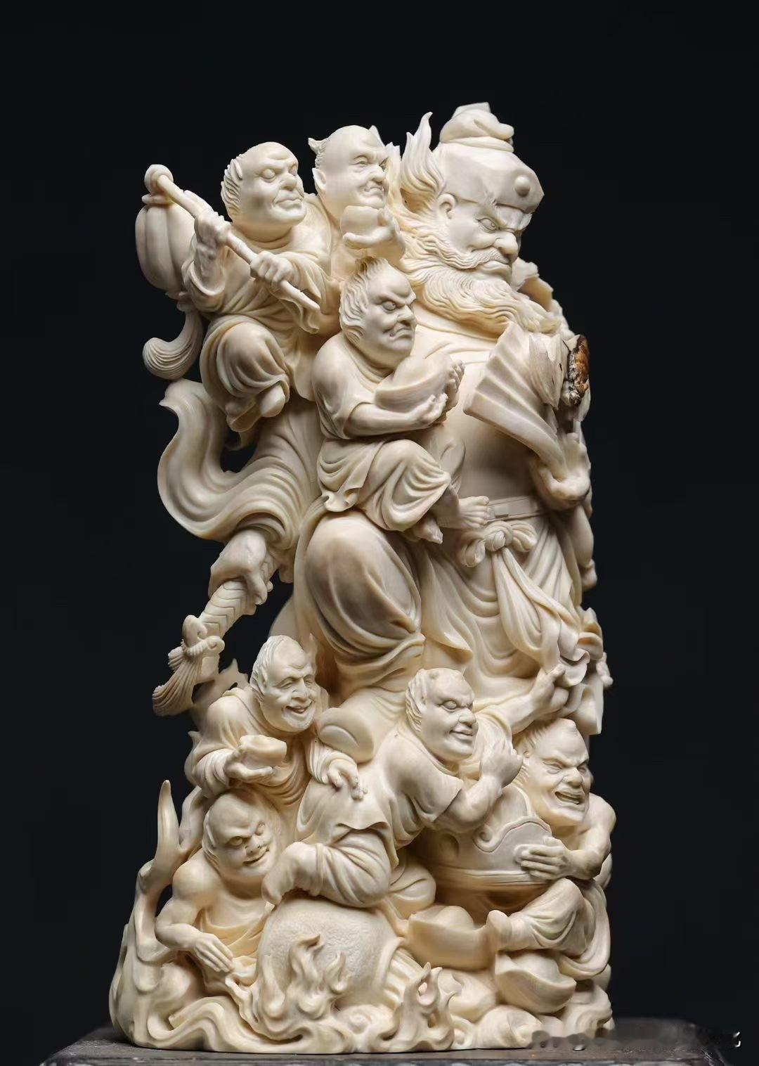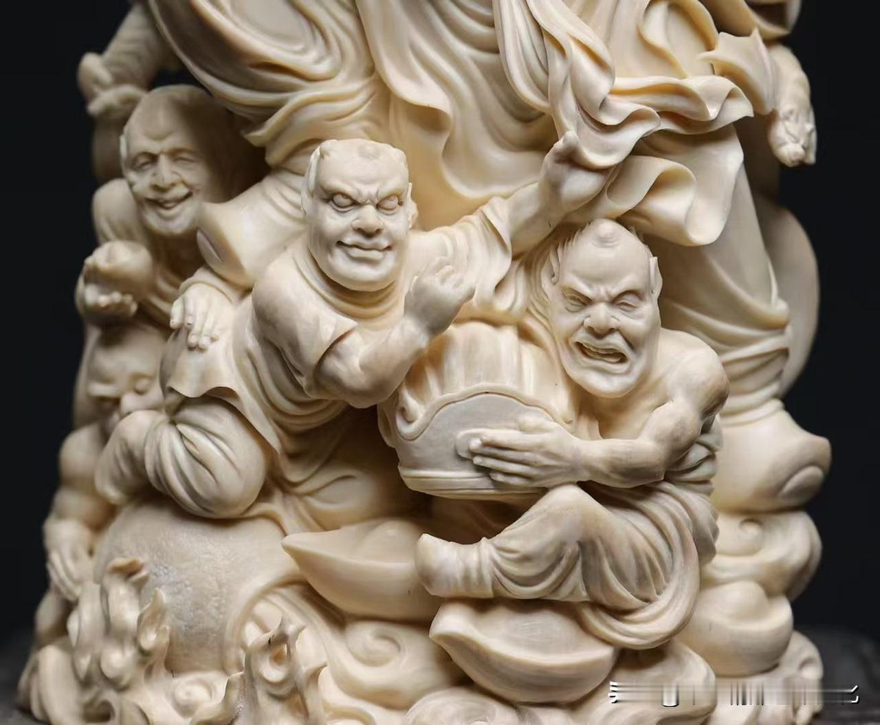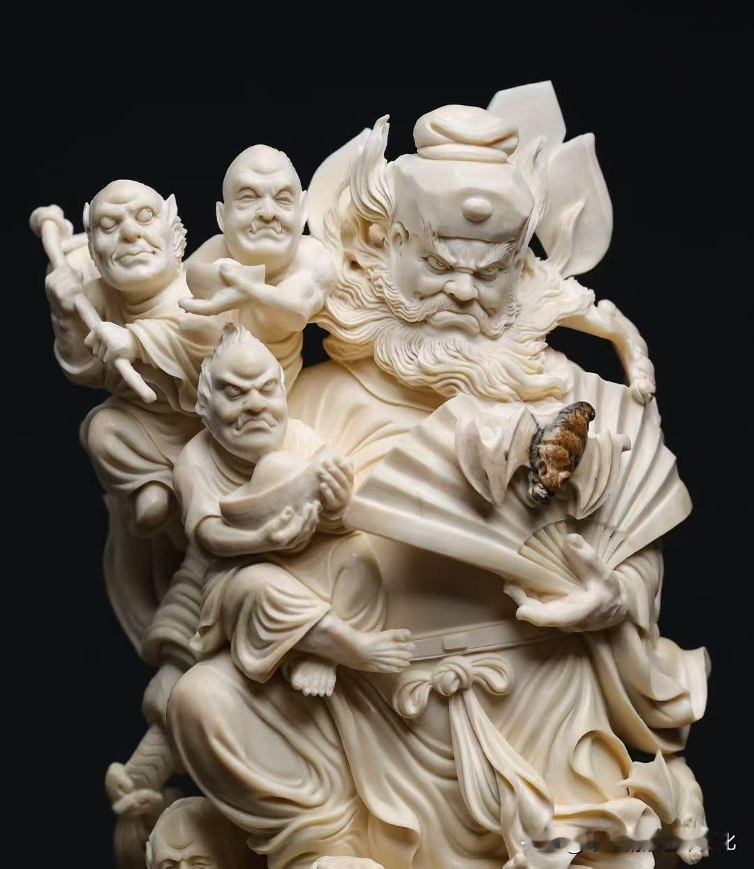 这尊钟馗,并不急着张扬威势。面相收而不放,怒中带定,七鬼环绕却不乱,各自有动,却都被一股无形的“势”压住——动中有序,这才是难处。