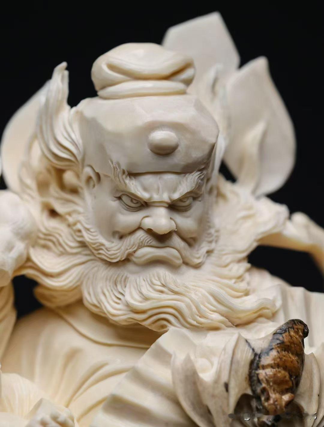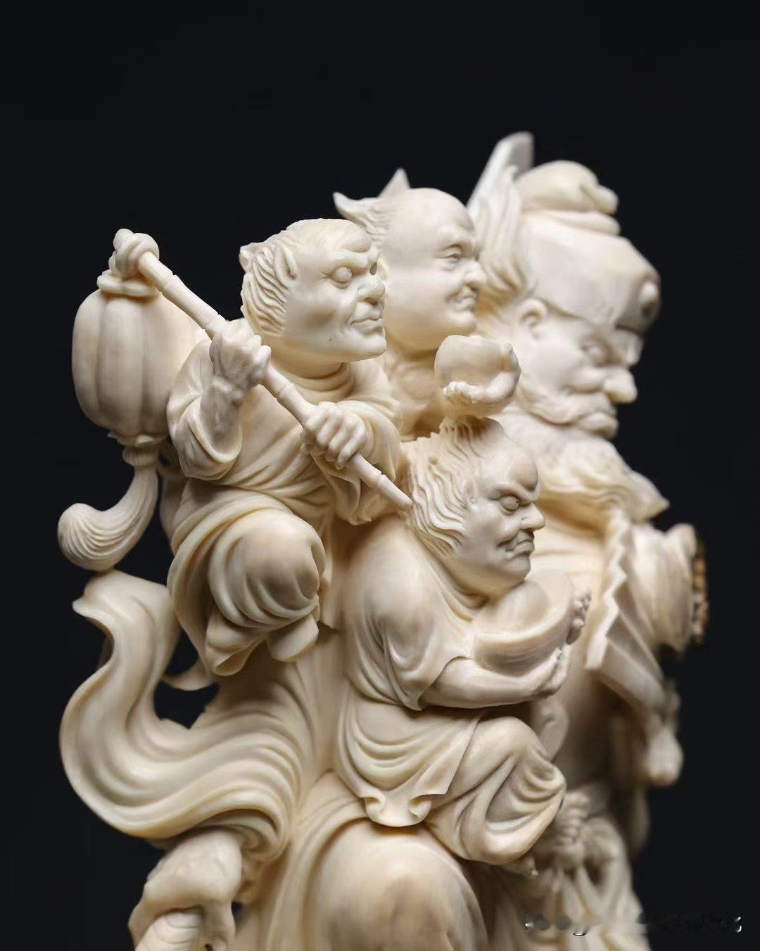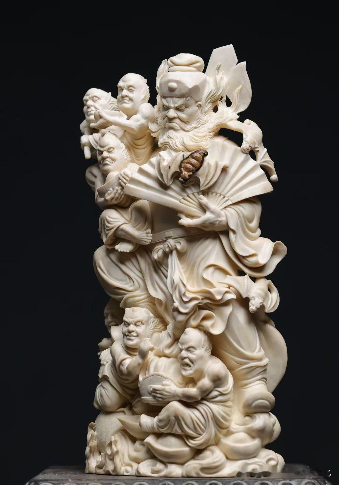 这尊钟馗,并不急着张扬威势。面相收而不放,怒中带定,七鬼环绕却不乱,各自有动,却都被一股无形的“势”压住——动中有序,这才是难处。