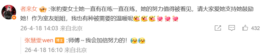张慧雯简称者来徒张慧雯回复者来女 者来家族又添新成员!张慧雯唱歌拜师者来女,从此有了新称号“者来徒”。她还回复者来女:“师傅,我会加倍努力的!”姐姐们感情是真好,期待者来徒早日出师!