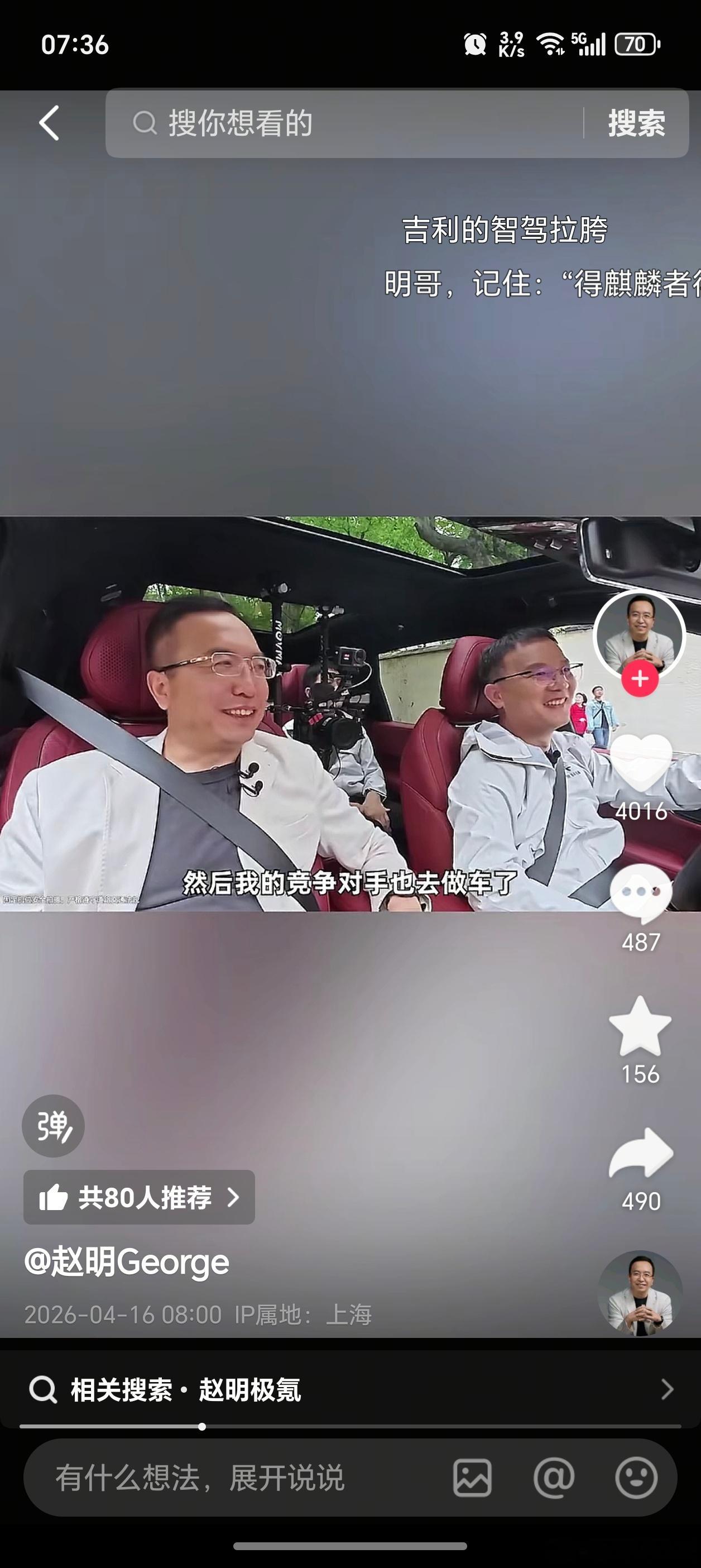 前荣耀CEO赵明更新视频了,这是明哥进入车圈后第一条公开视频吧。