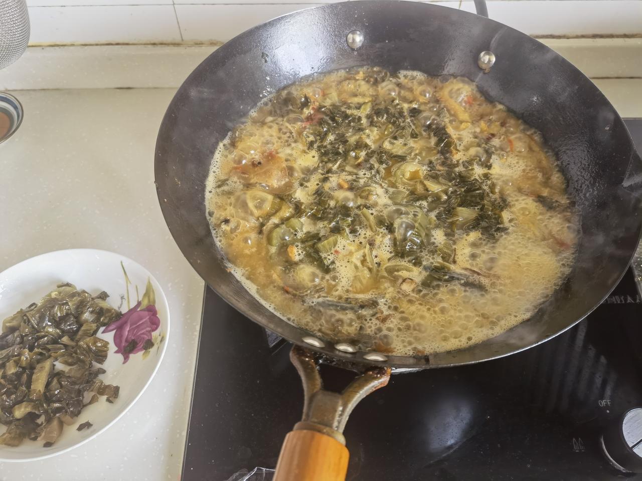 今天在家做了咱们湖北的一道名菜_腊肉酸菜炖泥鳅,老公说比大饭店做的还好吃。