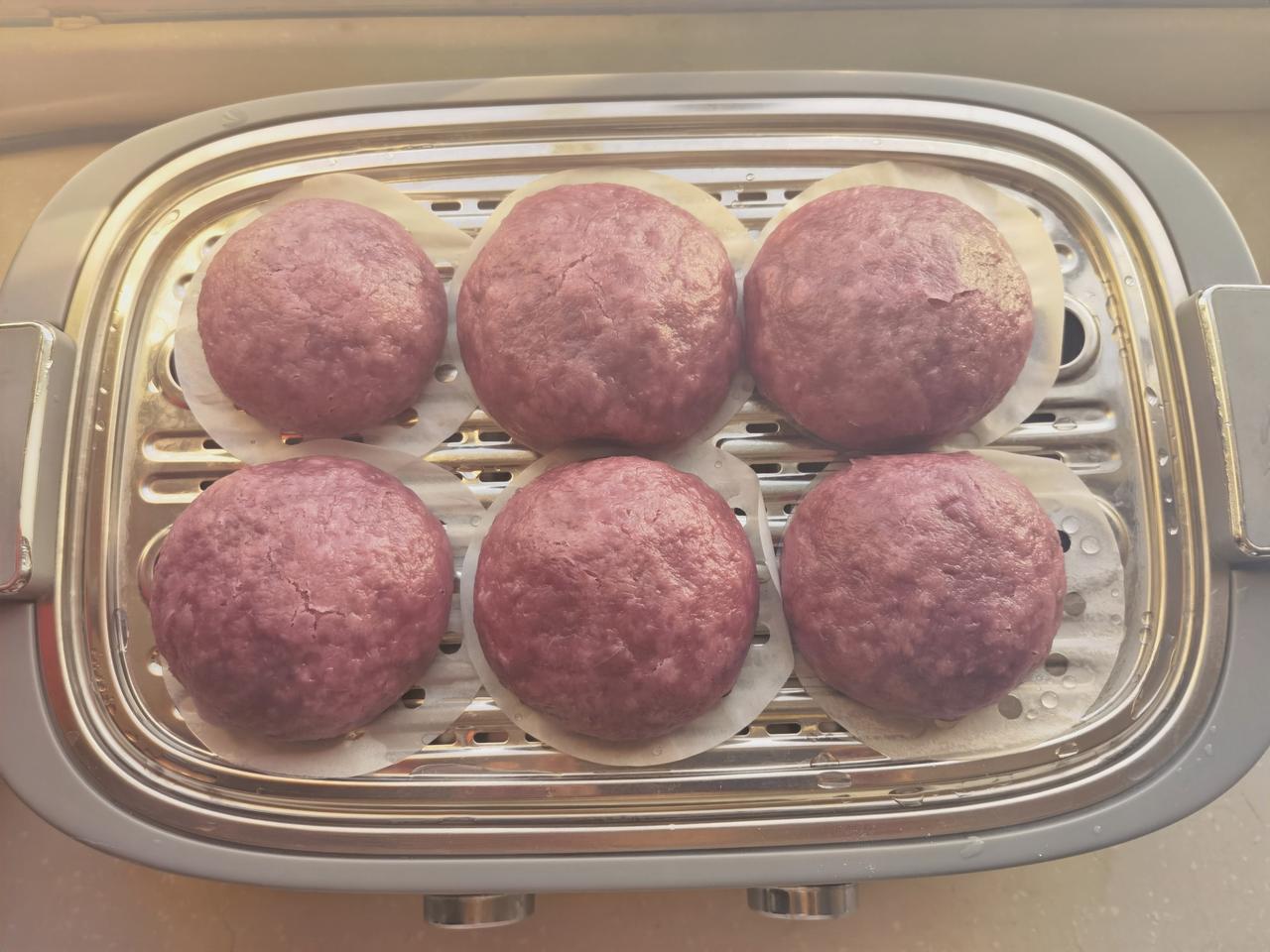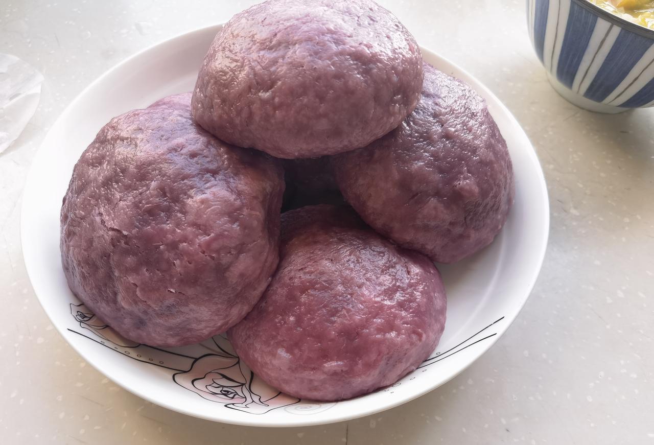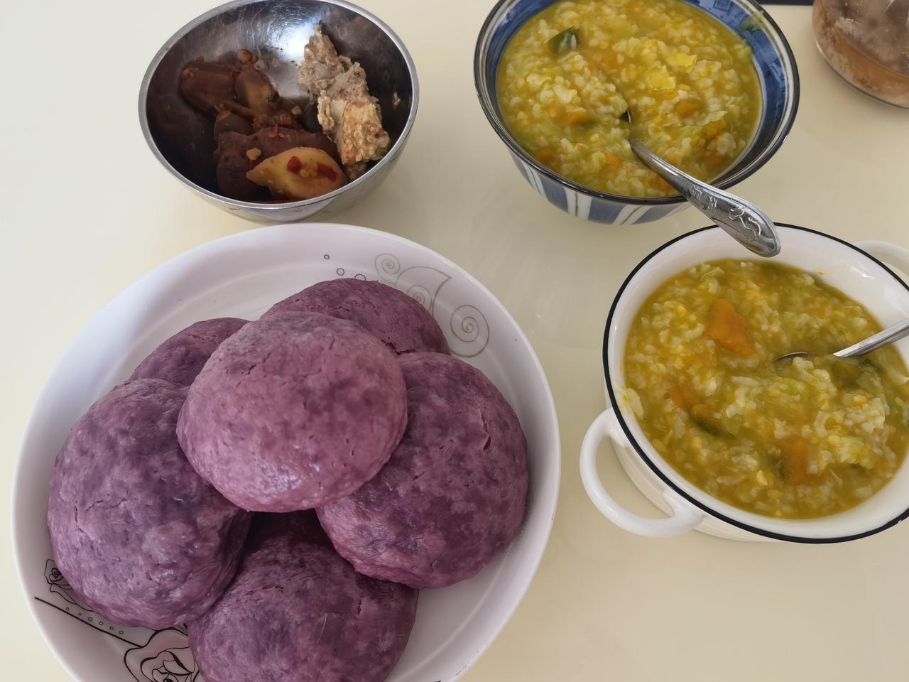 女儿从网上买了一小箱紫薯,想做点紫薯馒头吃,昨晚就和好面放冰箱发酵,和老公说好今早上在家煮点粥,蒸馒头吃,老公欣然同意。