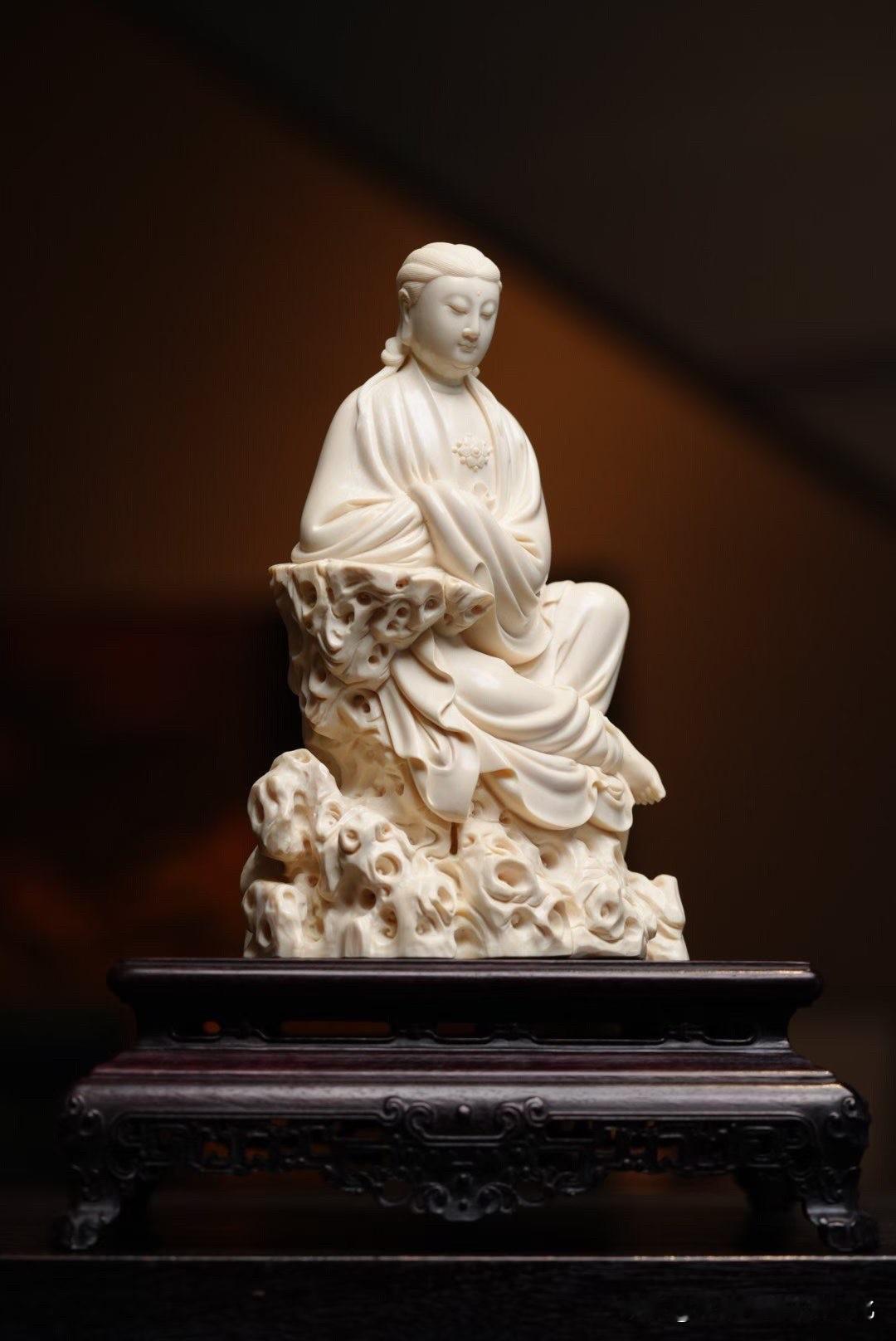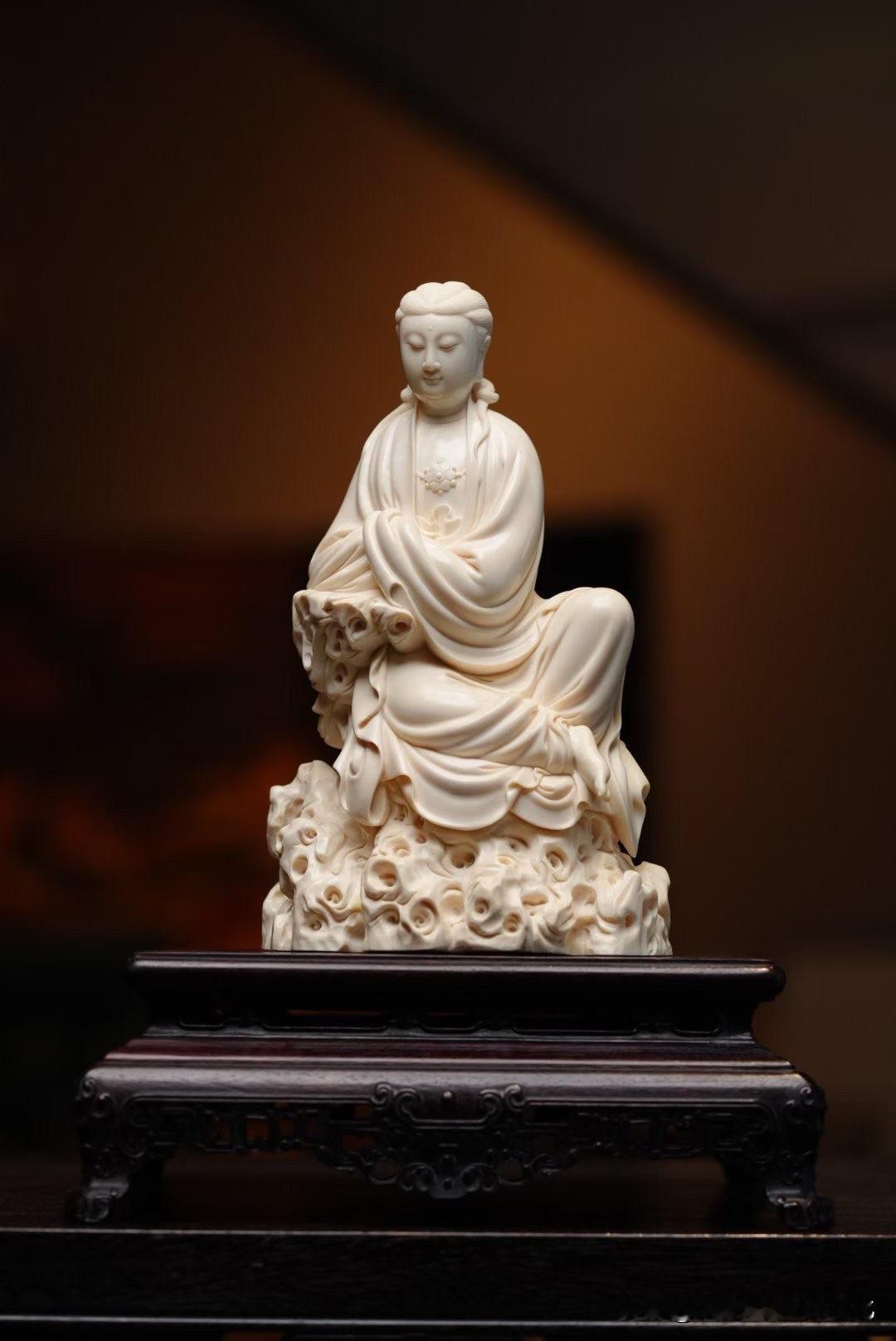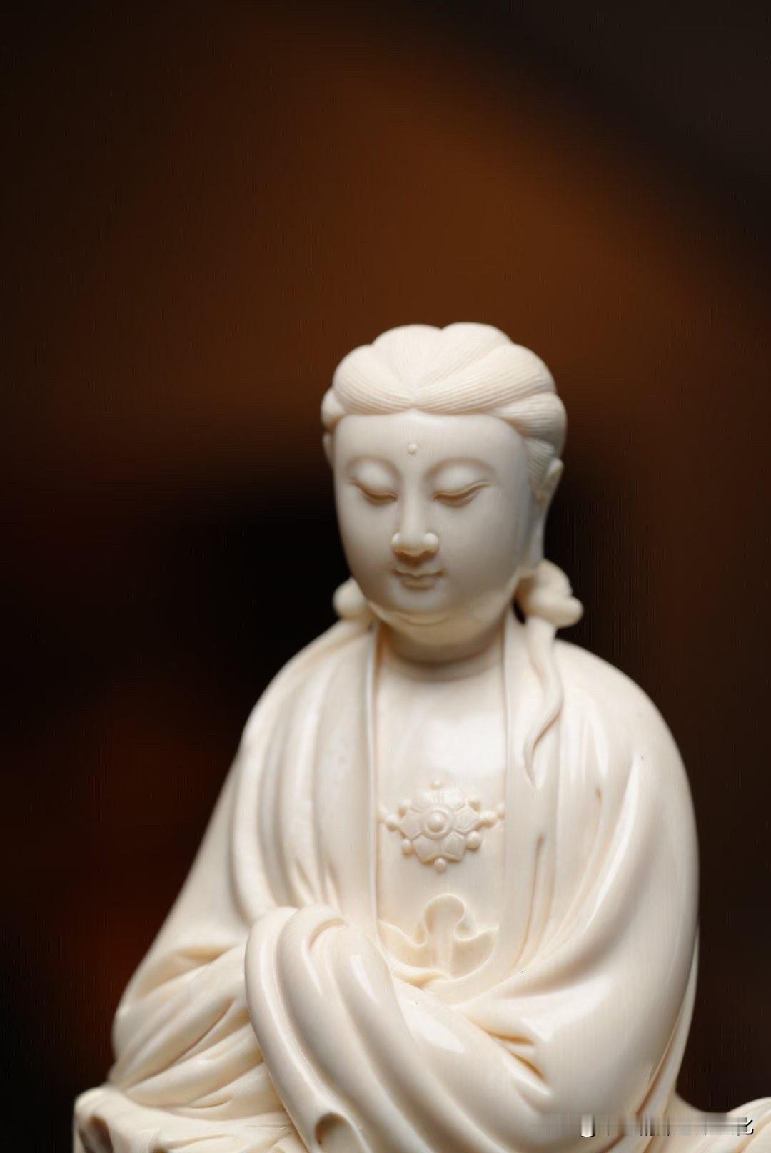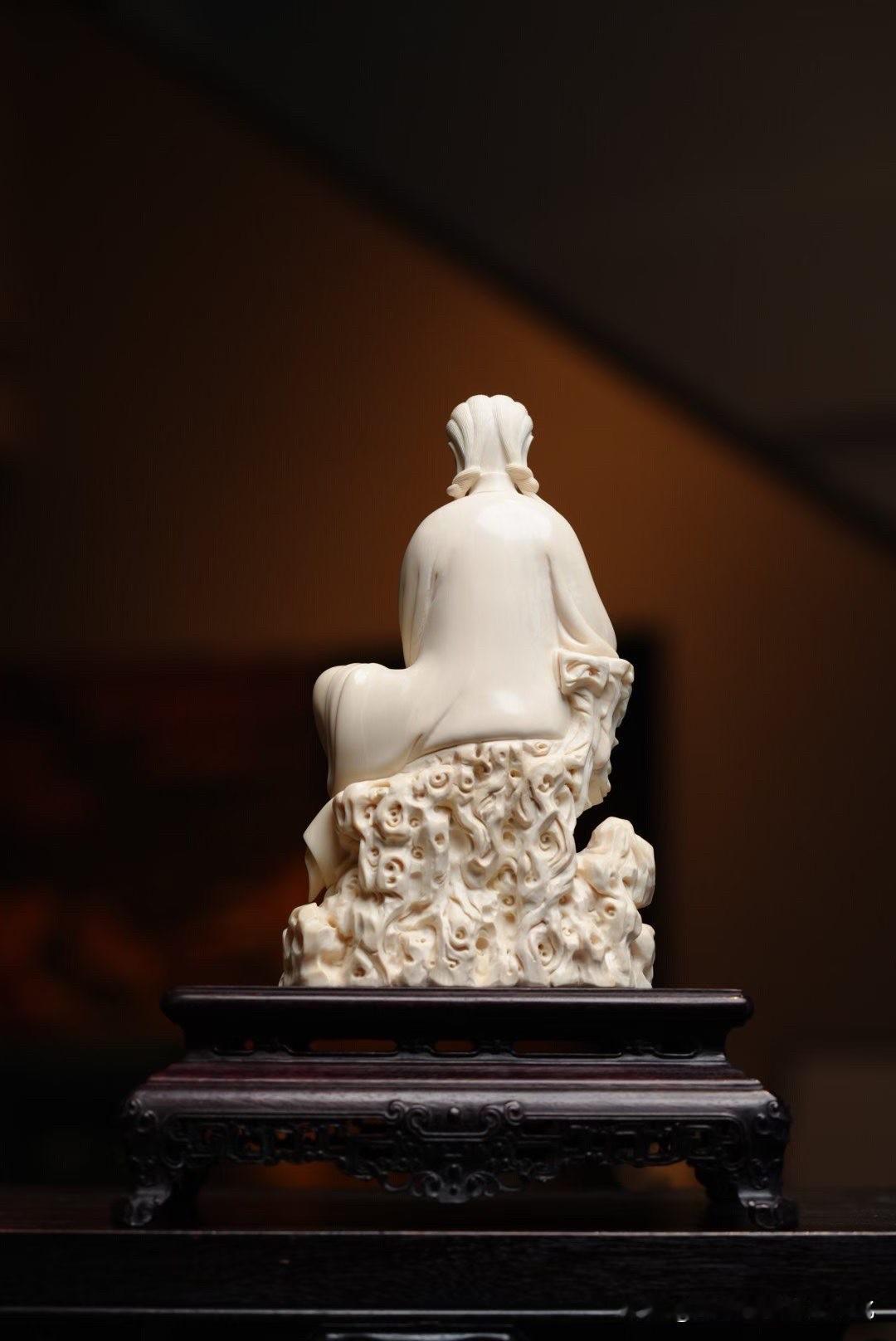猛犸牙的质地温润细腻,白得不耀,却有光在里面流。衣纹一层层垂落,线条干净克制,像风轻轻停过。整件作品,没有多余的动作,却处处都在呼吸。