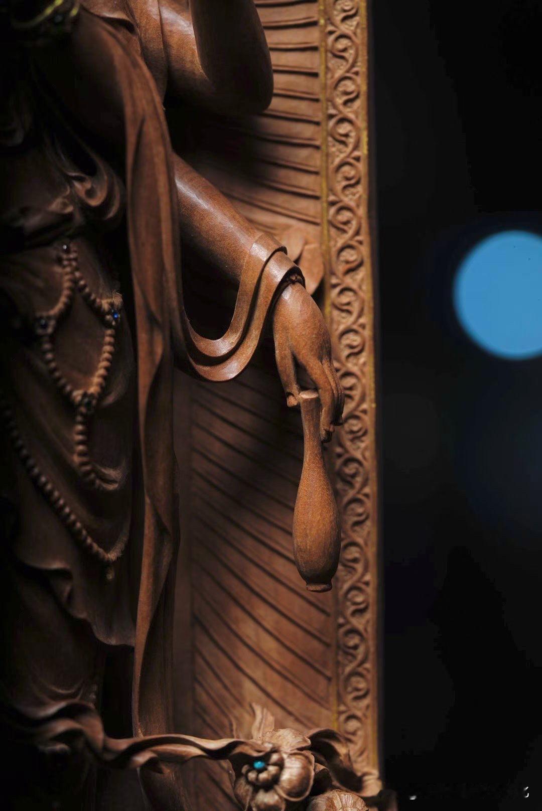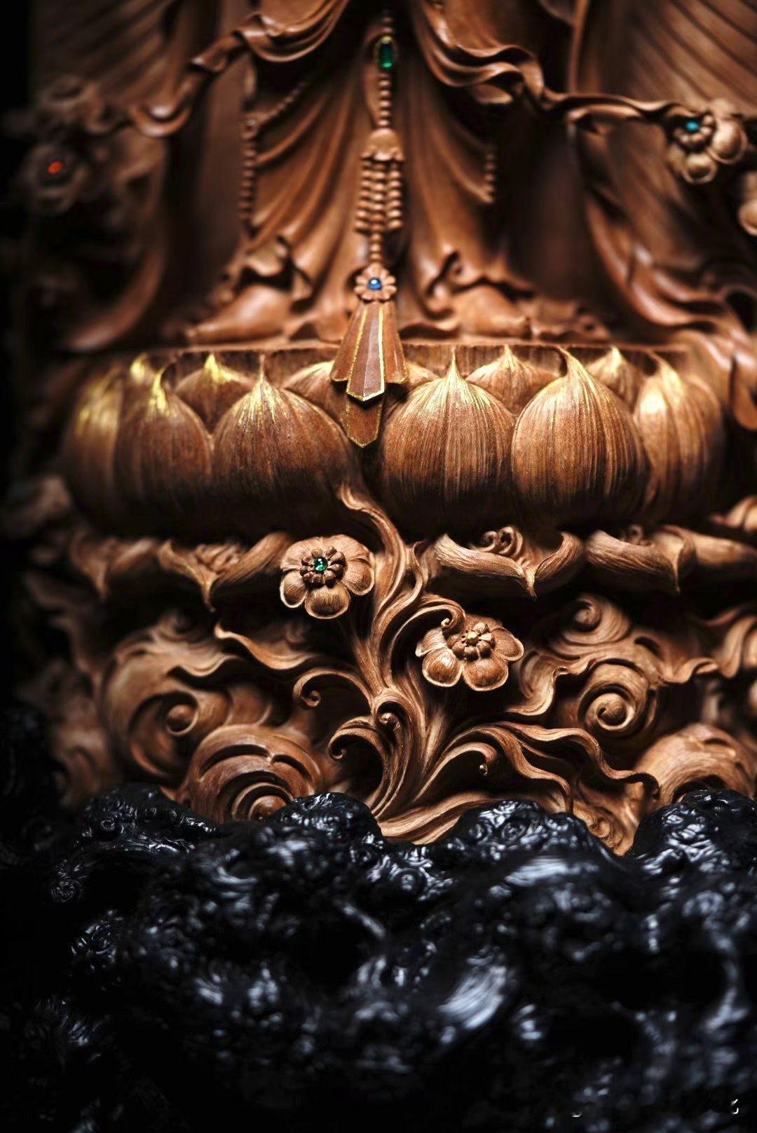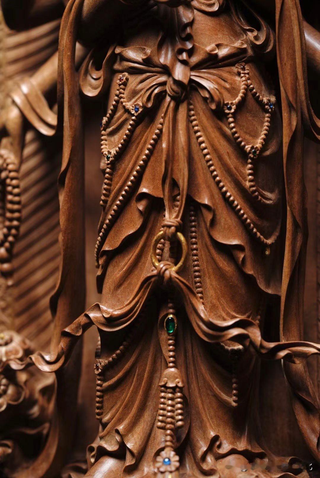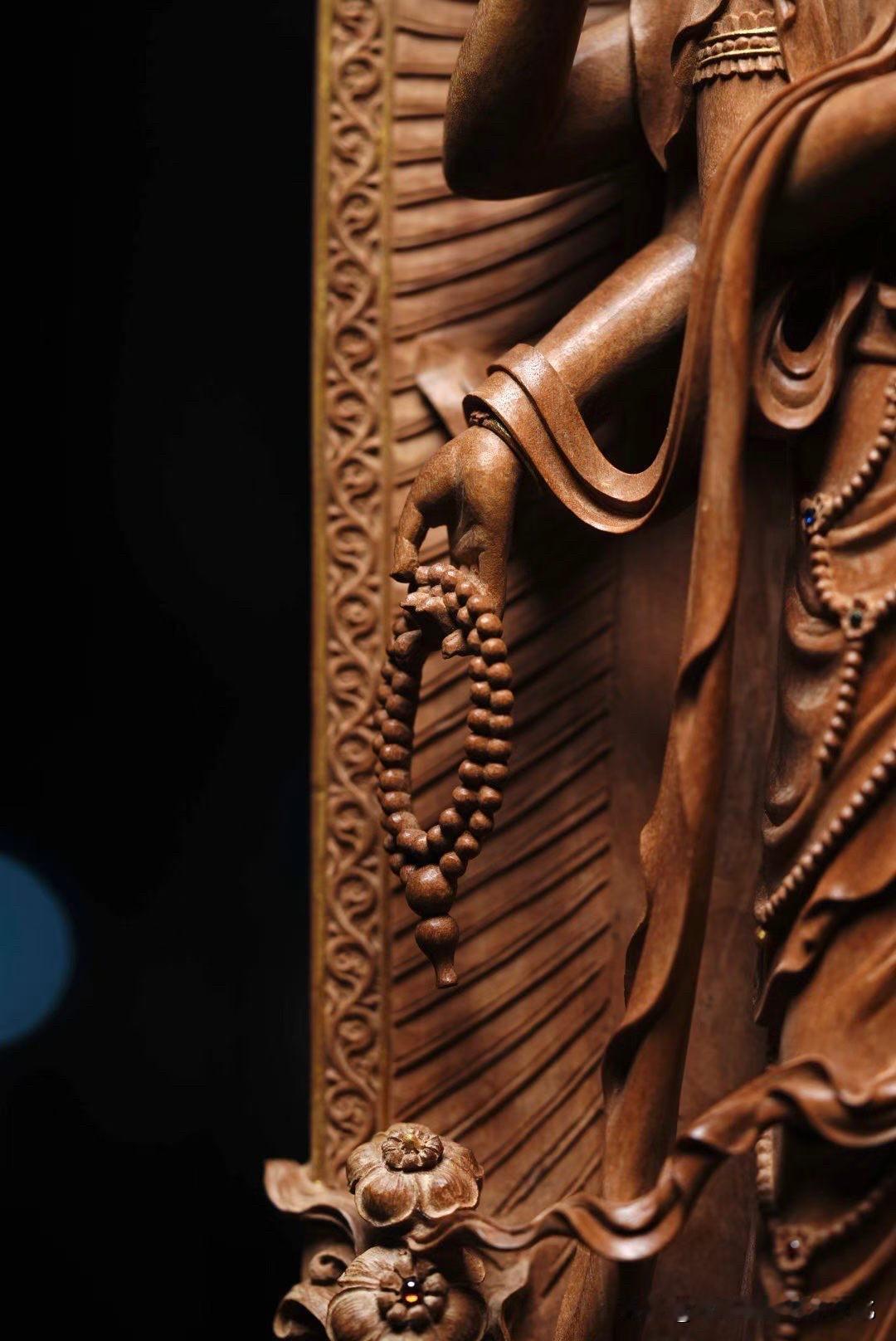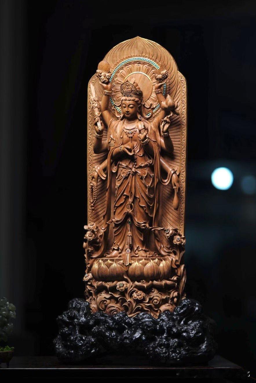 最难的是做出来,还是“收得住”?红木雕立观音 观音摆件木雕 木雕海岛观音 香木观音 六道木观音菩萨 四臂自在观音 四臂金刚手菩萨