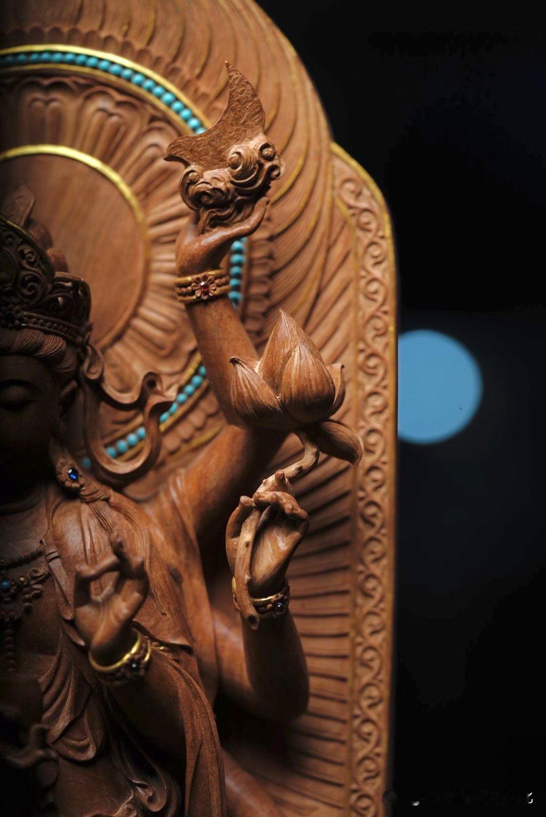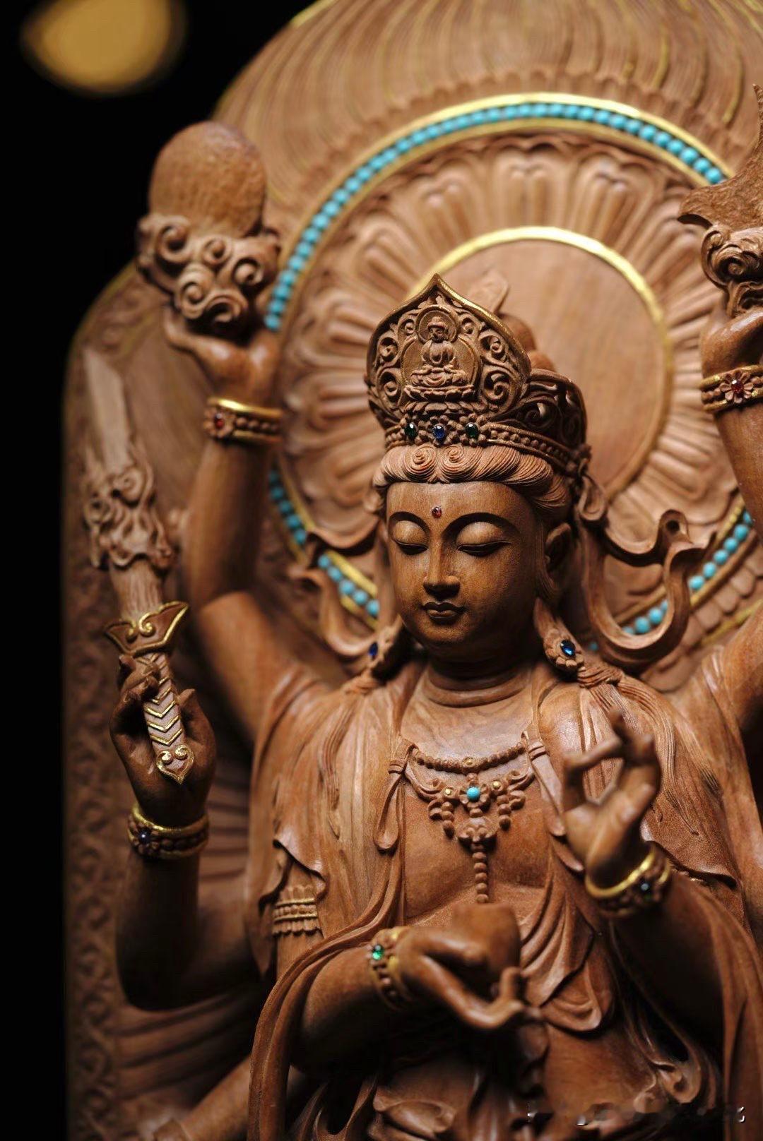 这尊八臂观音,第一眼是“多”, 再看,是“稳”。 手臂繁复,却一点不乱,每一臂