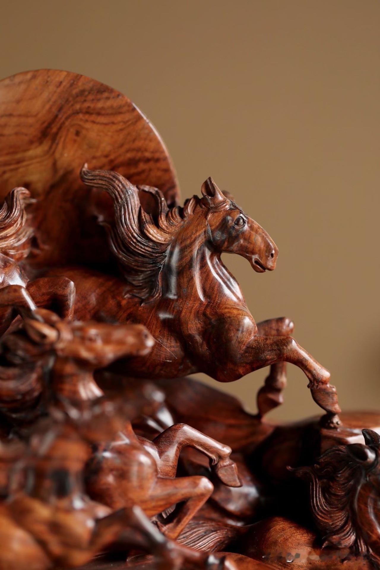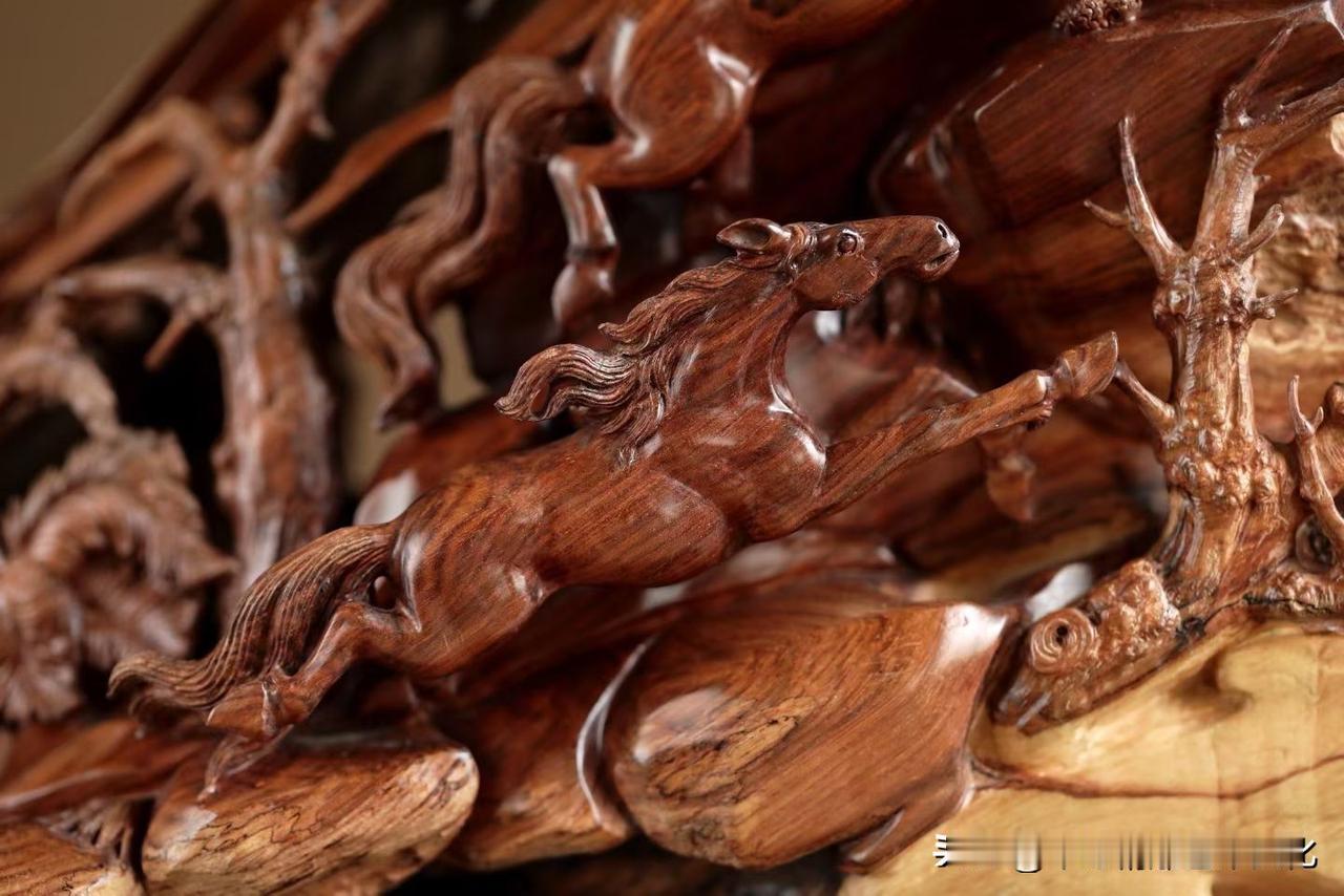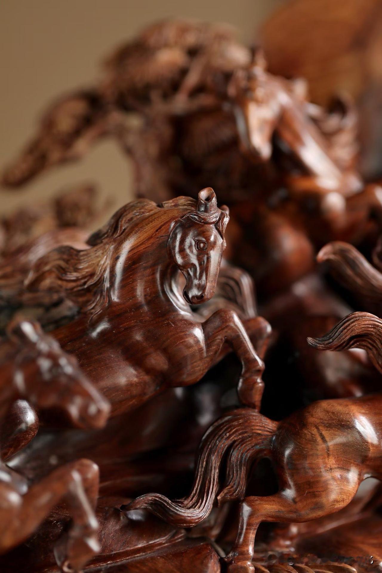 海南黄花梨|八骏雄风 第一眼,是奔腾。 八匹马从山势间涌出,气脉相连,一气呵成