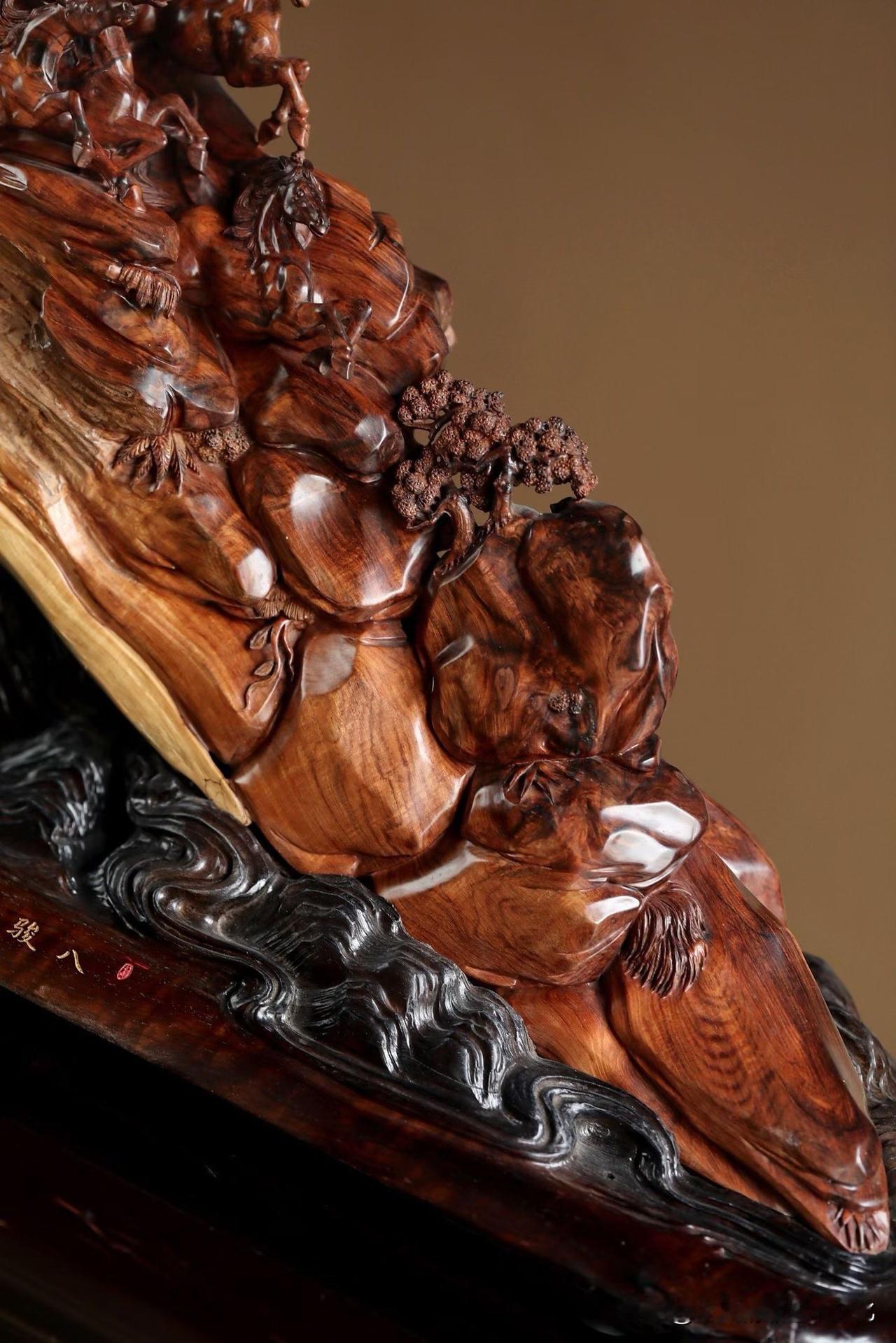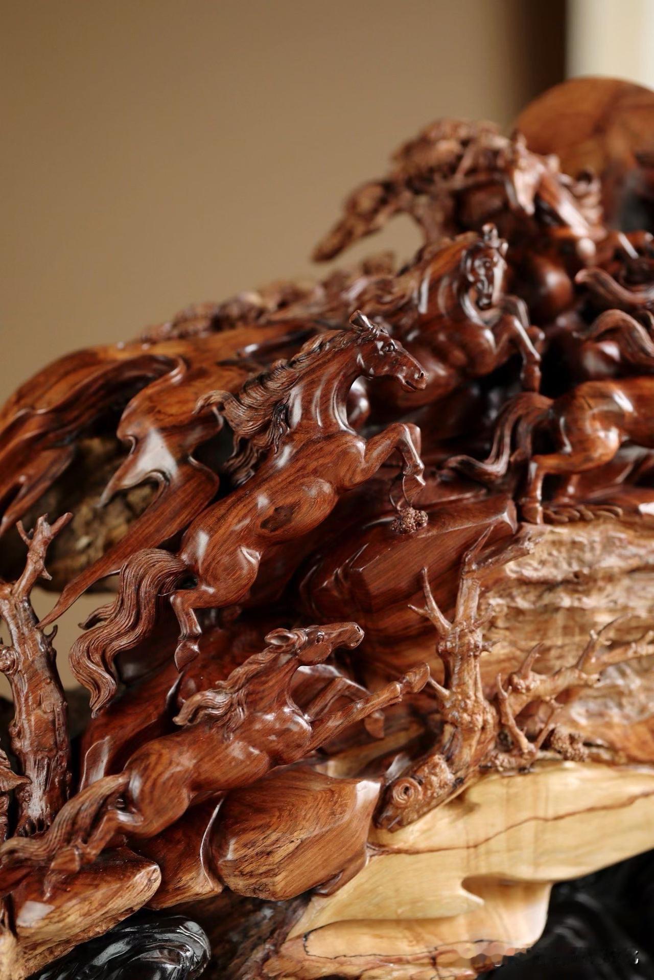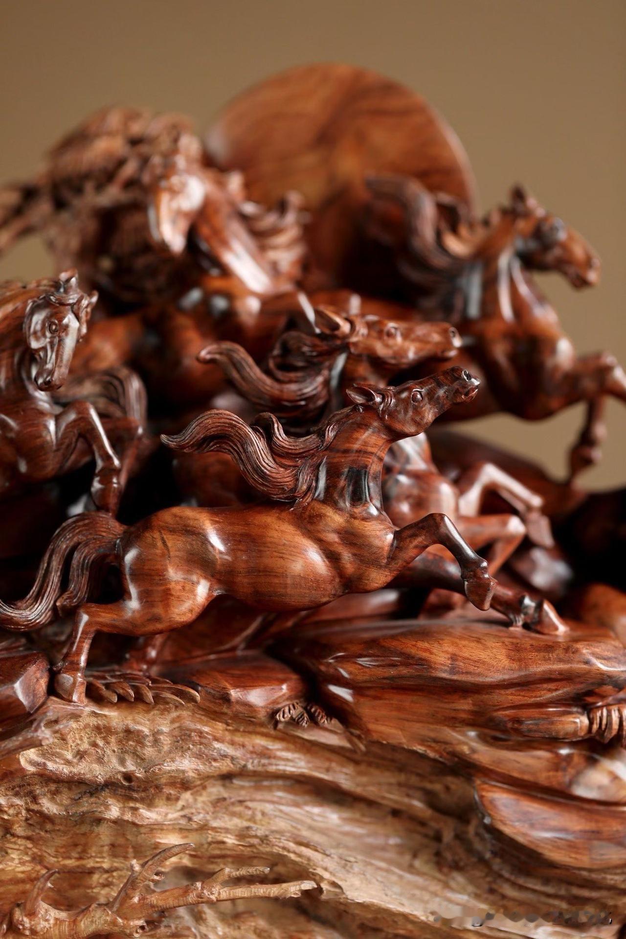 海南黄花梨|八骏雄风 第一眼,是奔腾。 八匹马从山势间涌出,气脉相连,一气呵成