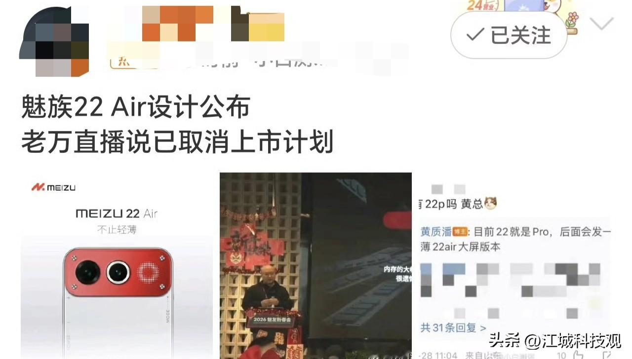 被网友视为梦中情机的魅族22air手机,原计划在26年的7月上市,结果在1月10被爆出取消上市。