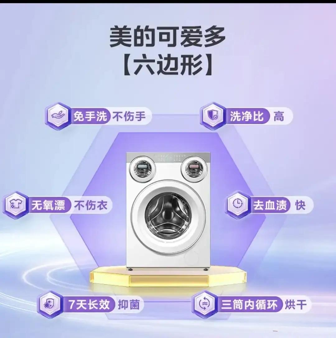 就像我家,宝宝的小衣服、大人的外套、内衣都能分开洗,干净又卫生。而且洗完后衣物干爽得很,再也不用长时间晾晒。它颜值也高,摆在家里可爱又实用,给生活增添不少乐趣。有了美的三筒洗衣机,洗衣变得简单又美好,可爱和干爽都能轻松拥有。
