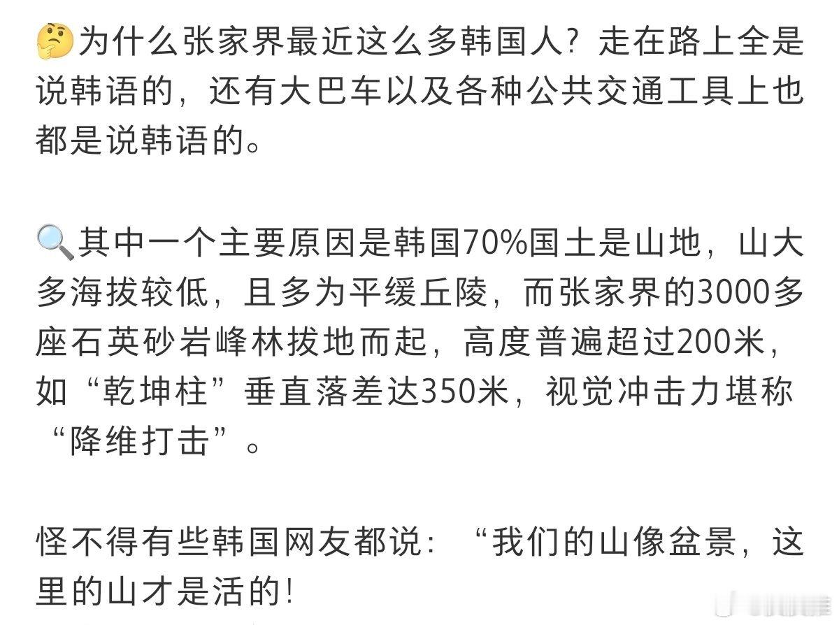 怪不得韩国人爱去张家界旅游为什么韩国人喜欢去张家界旅游?网友评论:因为韩国没有张