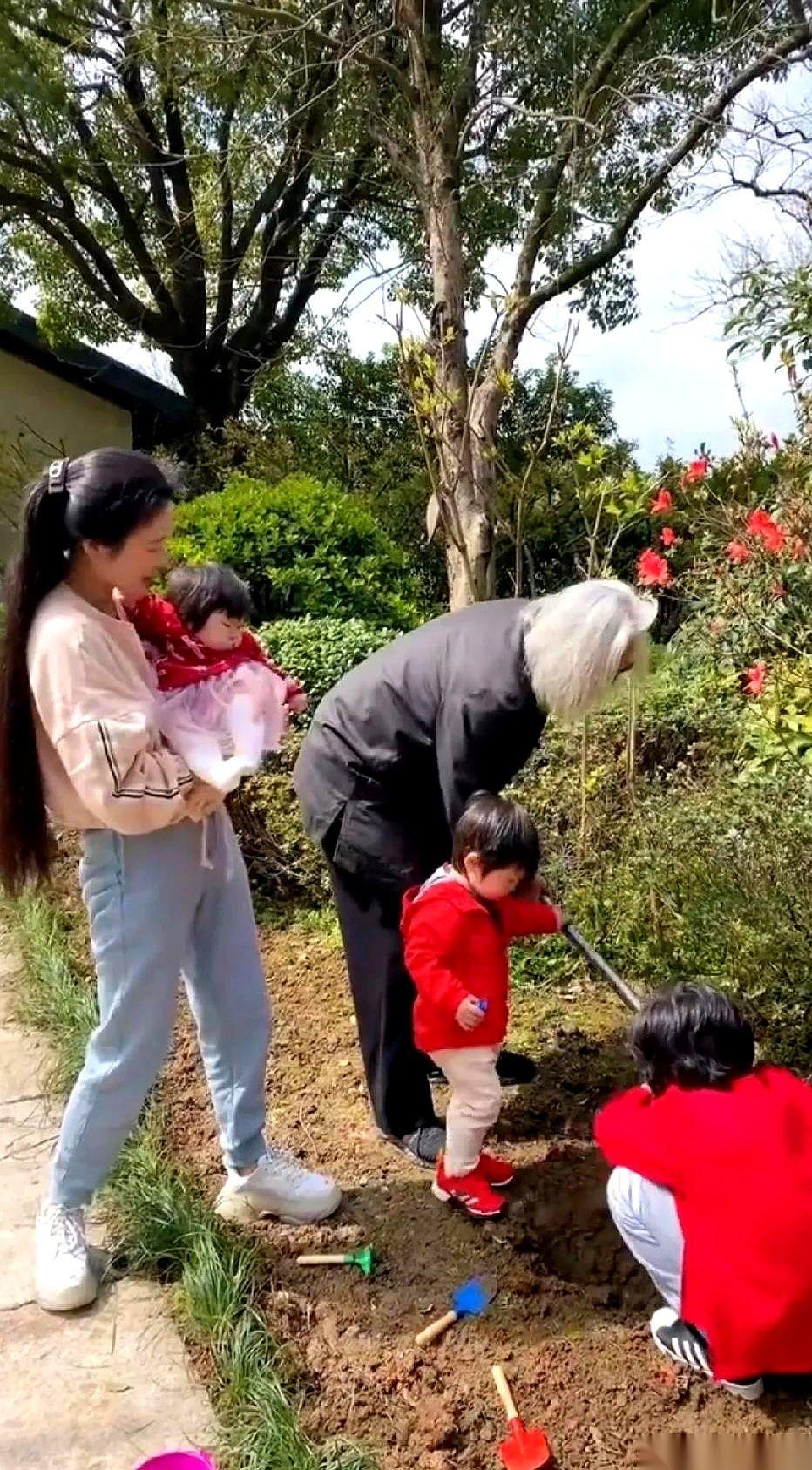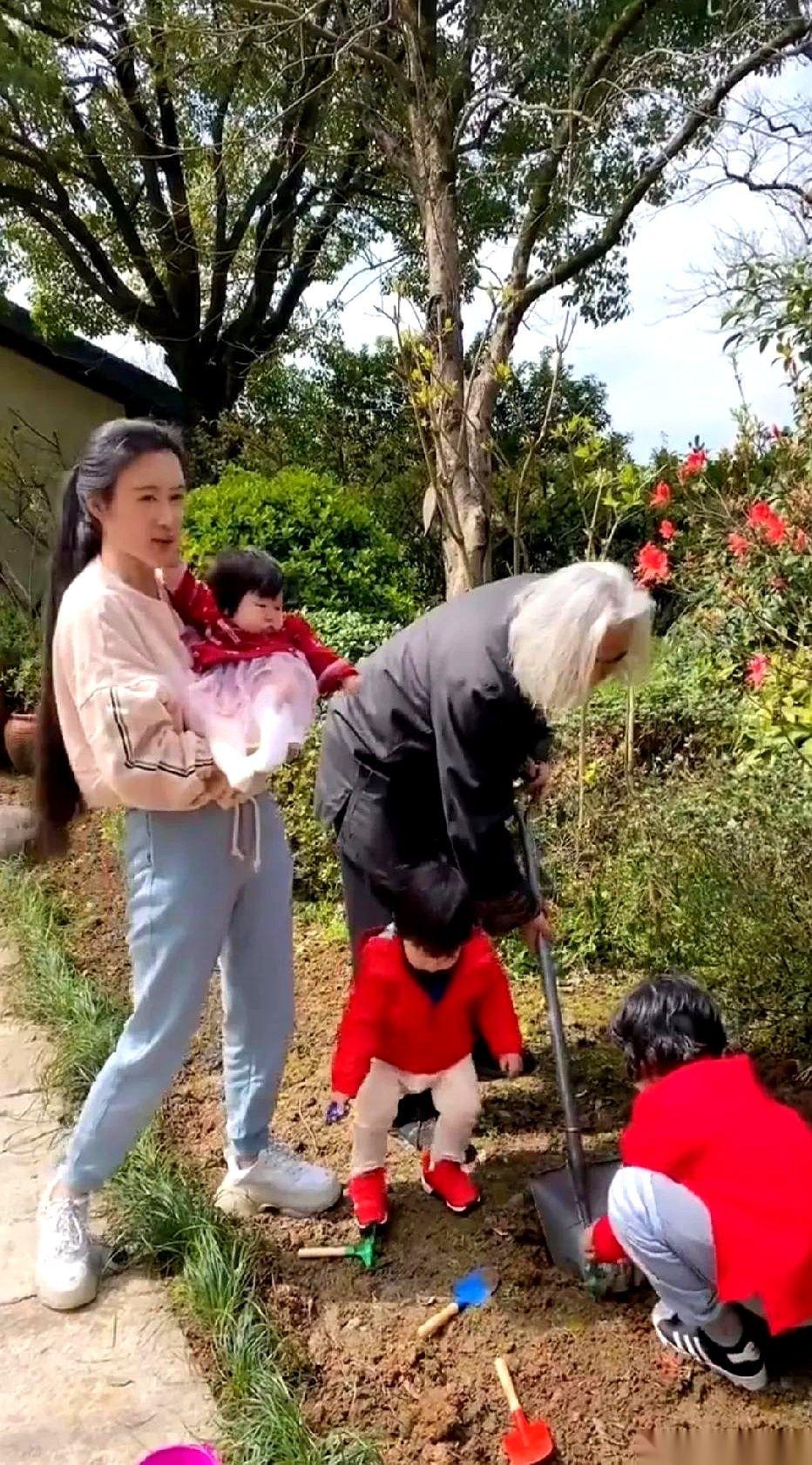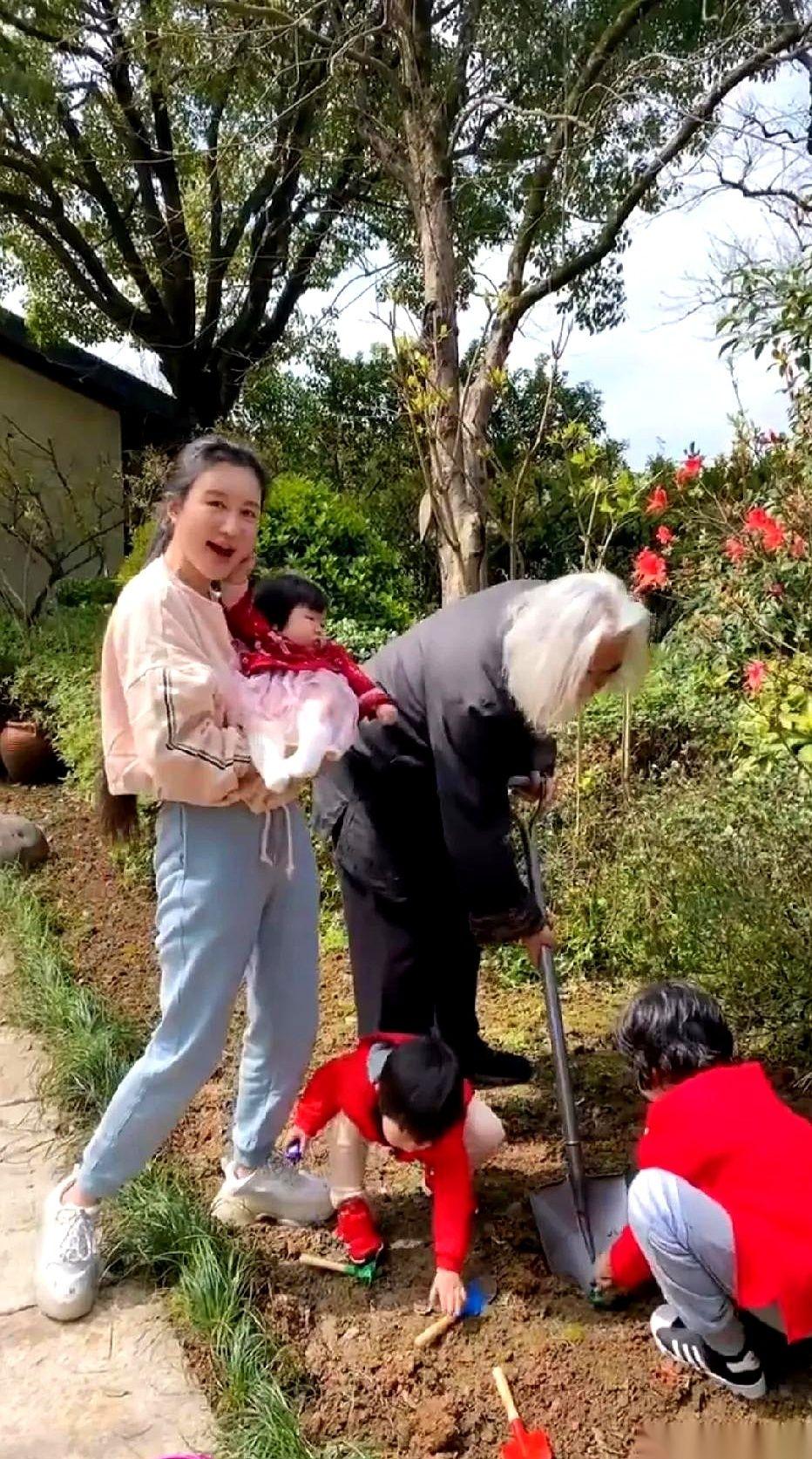 春日午后的自家小院里,没有任何端着的包袱,一家五口直接在泥地里摆开了阵势——栽花。