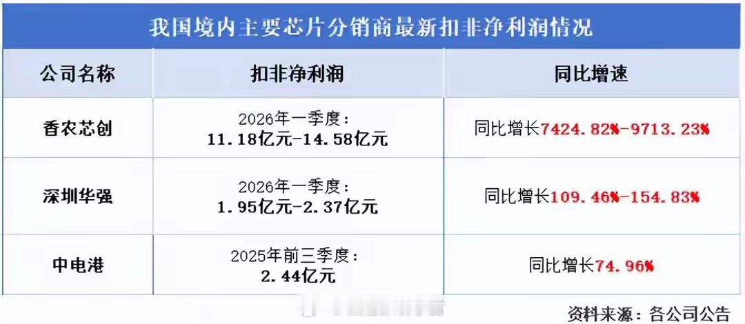 芯片分销第一股,利润剧增8700%!缺芯潮下,一家芯片分销商闷声发财!2026年4月7日,我国芯片分销巨头香农芯创发布《一季报业绩预告》,预计单季度净利润最高可达14.8亿元,同比增长率最高可达8747.18%。而在2025年,公司全年净利润也不过5.44亿元,如今单季度净利润居然比前4年净利润加起来还要多。这不禁引起我们的好奇:一个产业链中游的芯片分销商,到底是怎么杀出来的?又为何能赚得盆满钵满?抹去制造业标签芯片分销做到300亿先问一个问题:为什么必须存在芯片分销商。要从芯片产业链的庞大说起。全球芯片原厂商总数不过几百,且进入门槛高、市场格局集中。而需要芯片的下游终端市场极为庞大,从消费电子、汽车、工业到人工智能,每家公司的芯片需求数量、型号、特殊要求等等差异极大。如果芯片原厂商直接对接所有终端客户,那对其销售、仓储等能力来说都是巨大的挑战,可以说是“不可能完成的”。因此,必须有芯片分销商充当芯片原厂的“代理”,整个芯片产业链才能跑通。香农芯创看中了这个行业的巨大潜力,实现了从“制造业”到“半导体”的跨越。最开始,公司是卖洗衣机减速器的。2021年,公司收购联合创泰,一举切入半导体分销赛道。公司迅速完成业务迁移,2025年上半年,电子元器件分销业务已占据97.03%的营收份额。近期,受AI服务器等需求影响,全球存储芯片需求量激增。很多人称这是一场“存储芯片的超级周期”。2025年上半年开始,全球服务器DRAM的价格一路升高。机构预测,2026年一季度DRAM内存芯片的价格涨幅可能超过60%,后三个季度有望一直上涨。行业催动之下,香农芯创业务越做越大,2025年营收成功突破352.51亿元。若按上半年97.03%的营收占比估算,公司2025年全年来自分销的营收超过340亿元。不仅如此,横向对比其他芯片分销公司,香农芯创也很能打。近期,芯片分销商业绩几乎都迎来不同程度的增长,可据各公司最新数据,香农芯创的扣非净利润增速最快,最高可达9713.23%。能脱颖而出,香农芯创拥有以下三大优势:第一,手握半导体巨头的代理权。芯片分销行业中,最重要的就是代理授权和经销资质。香农芯创目前拥有存储器厂商SK海力士、主控芯片品牌 MTK的代理权,SK海力士是香农芯创的最大供应商。其中,SK海力士是DRAM三巨头之一,与三星、美光合计占据全球超95%的市场份额。而MTK联发科则是全球最大的智能手机芯片组供应商。由此一来,拥有上游大厂的代理权,香农芯创能较大程度保证产品供应稳定。另外,公司还早已拿下了AMD的经销资质,产品线覆盖数据存储器、控制芯片、模组等电子元器件。第二,客户资源好。凭借芯片原厂的技术、品牌优势,香农芯创成功打入下游大厂供应链。截至目前,公司客户名单不乏阿里巴巴、中霸公司、华勤通讯等互联网巨头,还对其他国内大型ODM企业实现覆盖。芯片原厂和客户都被打通,香农芯创的分销之路畅通无阻。第三,存货底子厚。分销赚的就是产品差价,手里有货才能把利润拉高。2020-2025年第三季度,香农芯创一步步提高存货水平,2024年达到28.58亿元。在芯片价格上涨阶段,充足的芯片存货能给公司带来巨大收益。在2025年前三季度,公司加速出货并取得了不小的收益。不仅如此,这种优势还将继续维持一段时间。截止三季度末,公司账面还拥有18.13亿元的存货储备,为其后续销售增添底气。三大优势在手,不过,香农芯创也有自己的烦恼。从分销到自研向芯片下游要利润一方面是,“应付账款”高增。近几年,随着业务扩张,香农芯创加大了上下游的“买、卖”规模。2021-2025年三季度末,公司应付账款从0.71亿元提升到8.14亿元;应收账款也从4.2亿元提升到37.62亿元。应付账款主要来自上游货款,目前公司12.24亿元的货币资金也可以覆盖。可是,目前应收账款金额已经占据公司总资产的40%,若货款一直沉淀,不仅转化不成现金流,也给公司带来资金周转风险。另一方面是,毛利率需要提高。分销,产业链位置决定了它的毛利率不可能很高。多年以来,香农芯创、中电港的毛利率一直都是个位数,2025年前三季度,香农芯创的毛利率又降到了3.13%。不过也有例外的情况,不难发现,深圳华强的毛利率就要高出不少,甚至有时候能超过10%。深圳华强代理的产品线更多元,部分高附加值芯片的毛利率高于存储芯片。同时,位于著名的“华强北”,公司还拥有国内规模最大的电子元器件实体交易市场“华强电子世界”。为提高毛利率,香农芯创选择在一个更艰难的领域进行尝试。那就是,芯片自研。2023年5月,公司出资3500万与SK海力士持股的君海荣芯、大普微电子等共创海普存储,香农芯创占比35%。海普存储聚焦SSD存储产品的设计、生产和销售,陆续推出了企业级SSD和企业级DRAM两大产品线,目前已经进入量产阶段,并完成了部分国内主要服务器平台的认证、适配工作。2025年,海普存储首次实现年度规模盈利。自研芯片取得初步成果,意味着香农芯创从“分销”跨度到“自研”,为其提高盈利能力增添一份底气。不过,中肯一点来说,还没有到庆祝胜利的时候。目前,香农芯创自研芯片业务营收占比较低,而且存储芯片领域竞争激烈,想要凭借自研芯片打出一片天地,公司还有很长的路要走。最后,总结一下。只要有市场需求,产业链的每一环都蕴含巨大的潜力,芯片分销正是如此。香农芯创,也向我们印证了这一点,如今业绩得