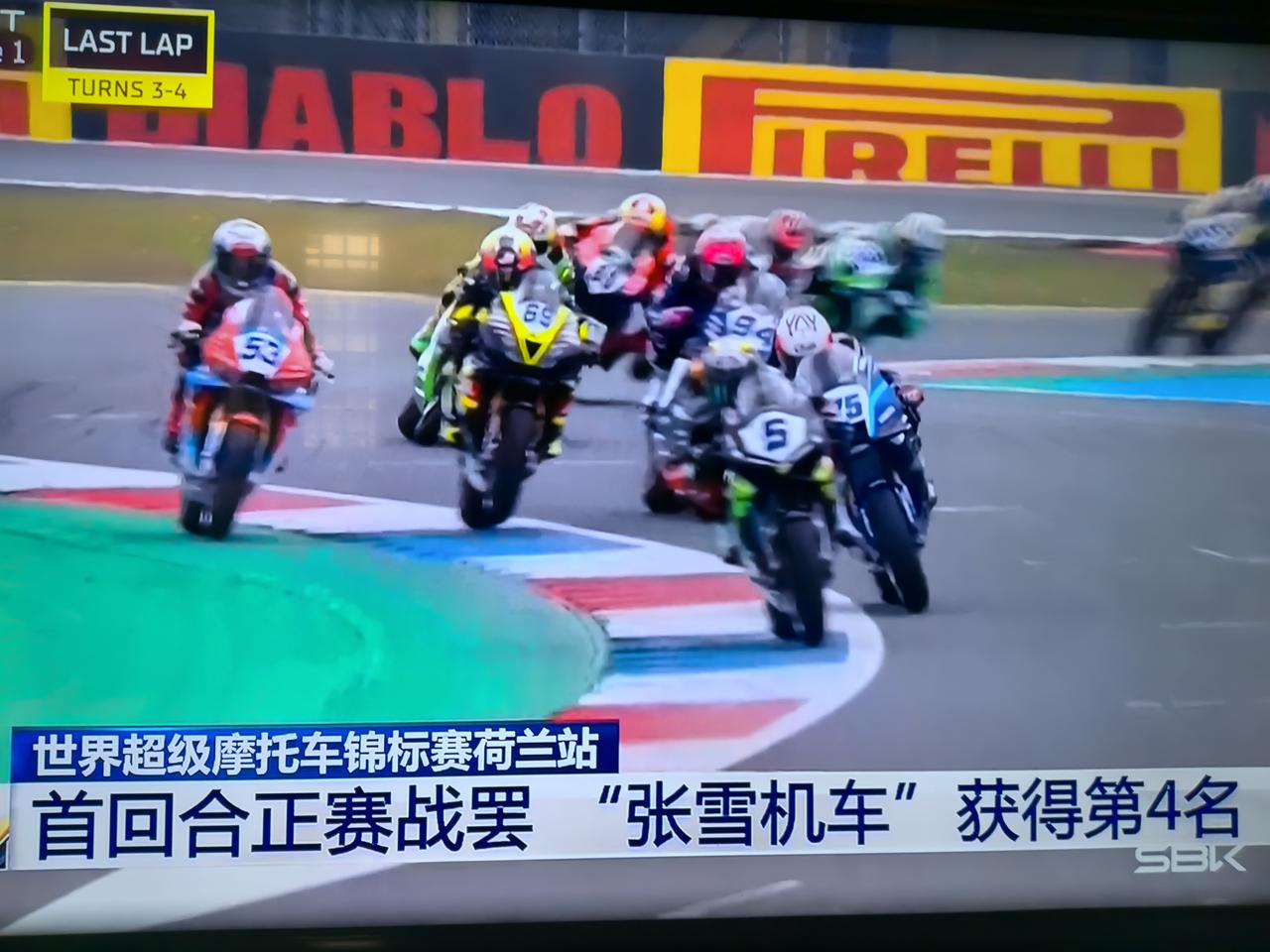 哇塞,央视给“张雪机车”好给力哦! 昨晚8点多,“张雪机车”在“世摩锦标赛”荷兰