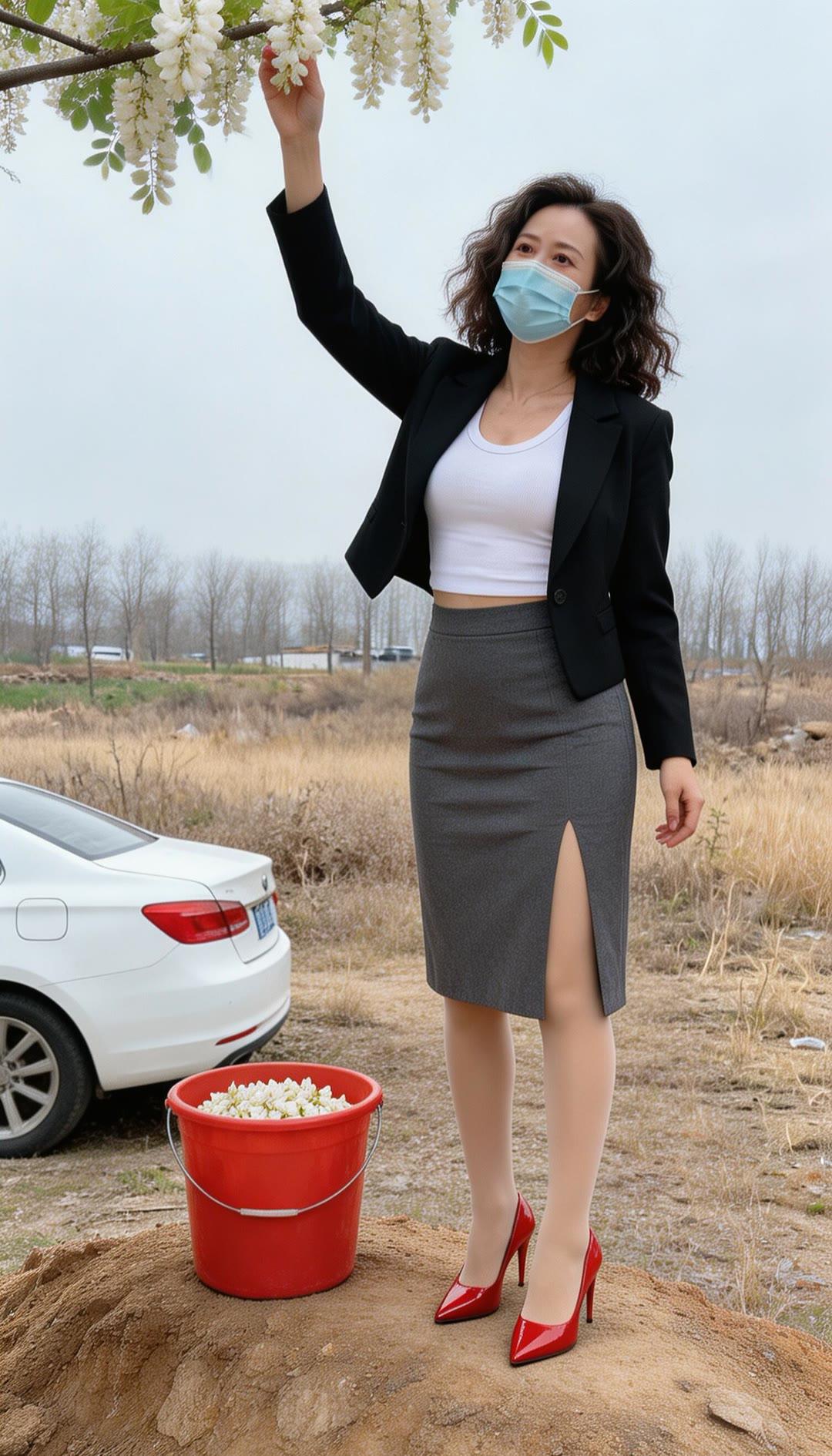 气质穿搭:白色衬衫+短裙+高跟鞋