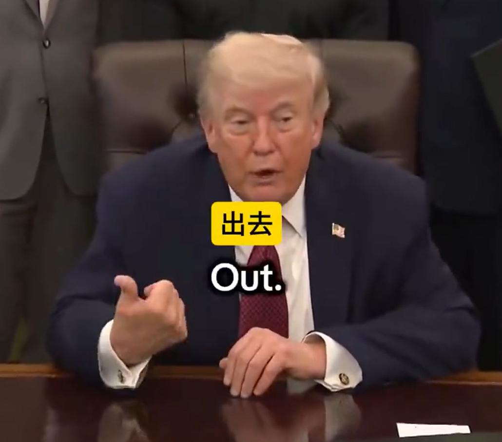 你说川普有礼貌吧,他不等记者问完,直接就说“out”,还做了个出去的手势。