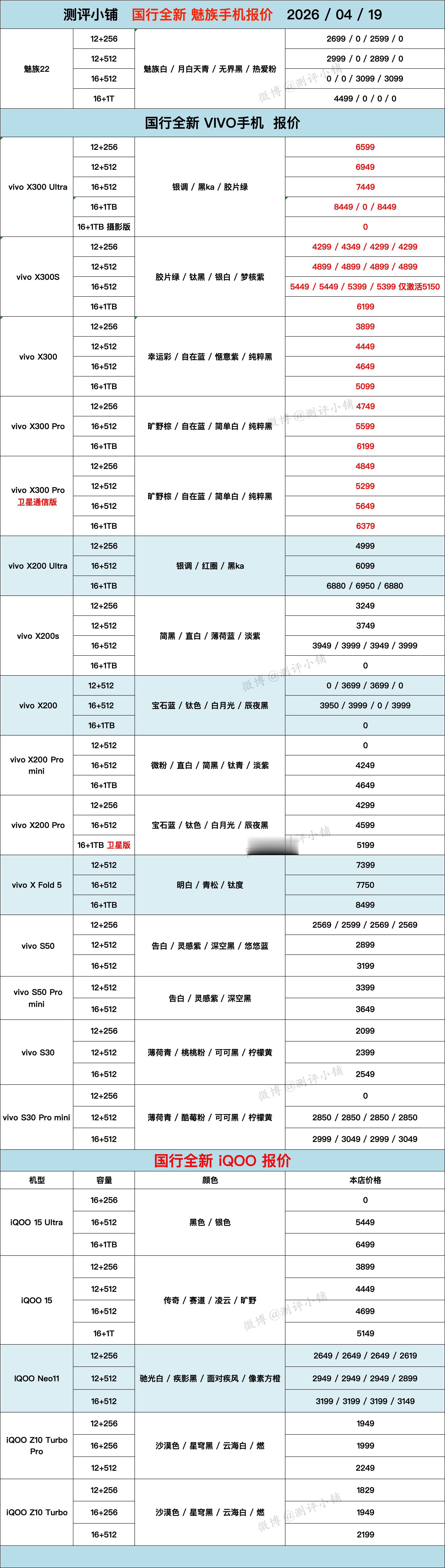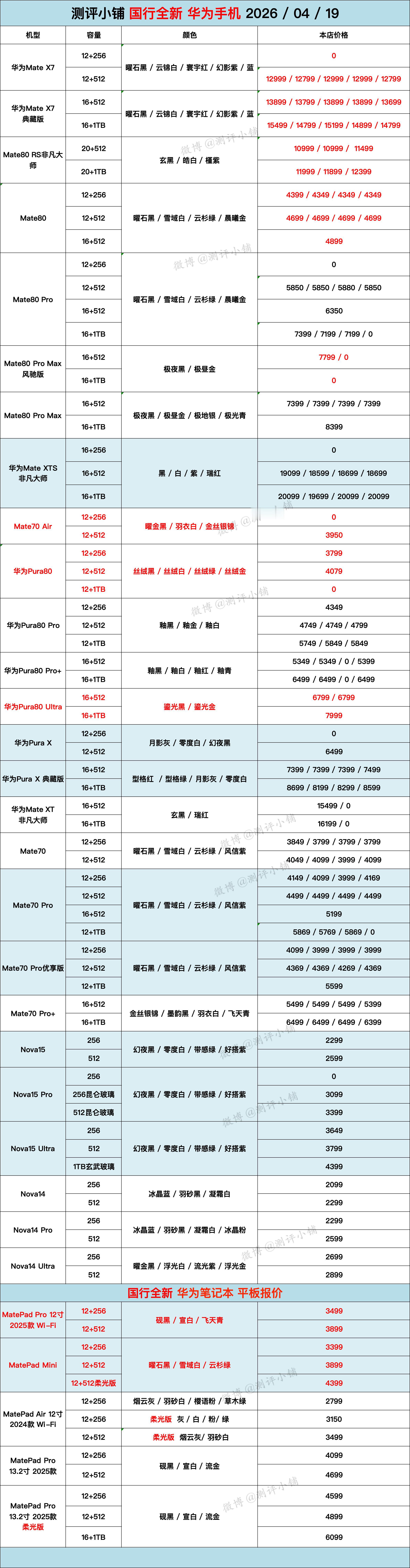04-19全新机,三星S26 Ultra低至8199,华为Mate X7,Pura80 Pro系列,Nova15 Pro,iPhone17系列,一加15系列等普遍下调,魅族22还剩最后几台。