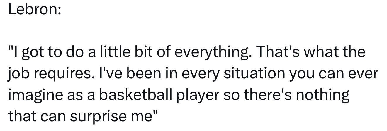 詹姆斯:“我需要在方方面面都做一点贡献。这就是这份工作的要求。作为一名篮球运动员