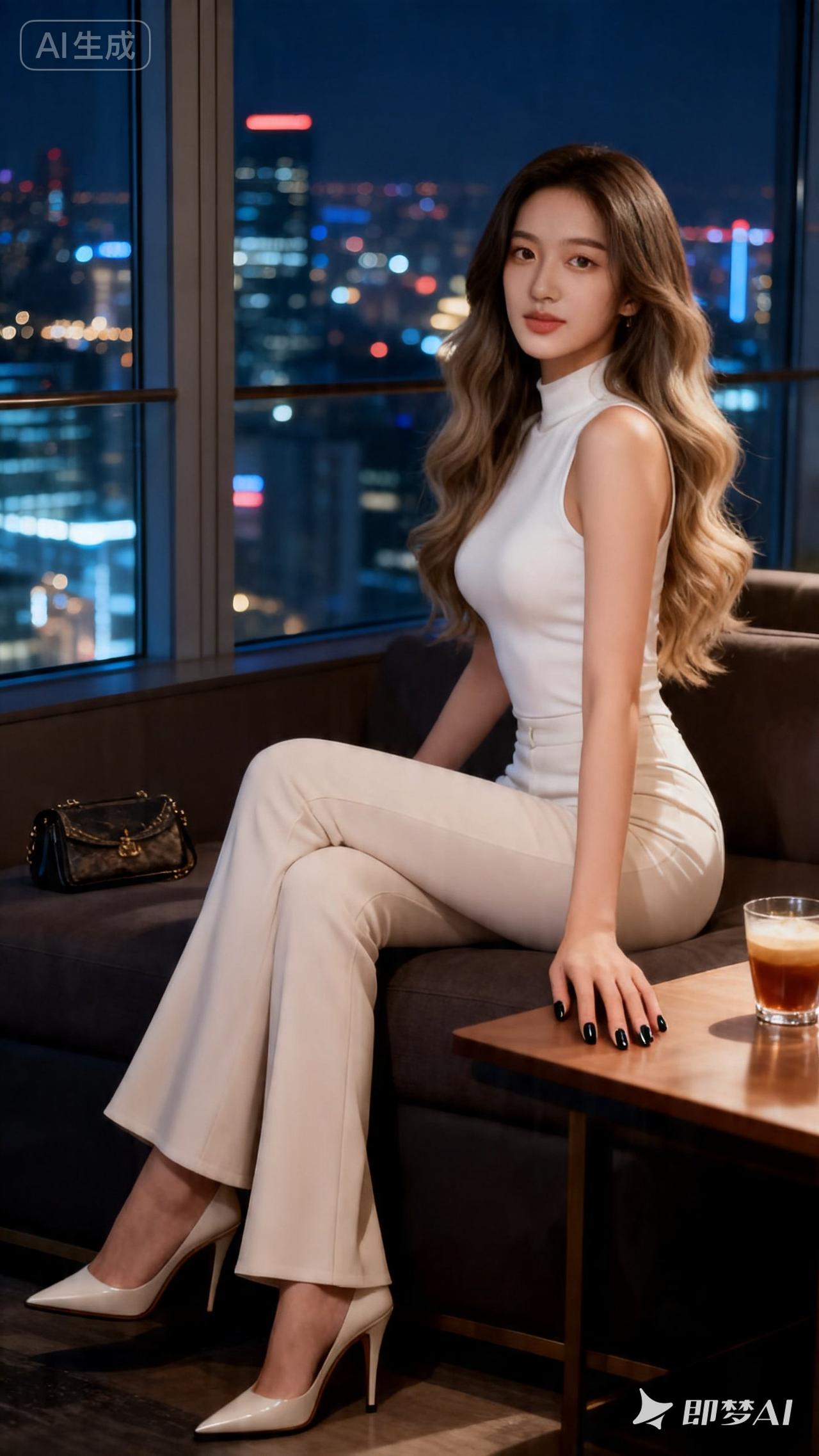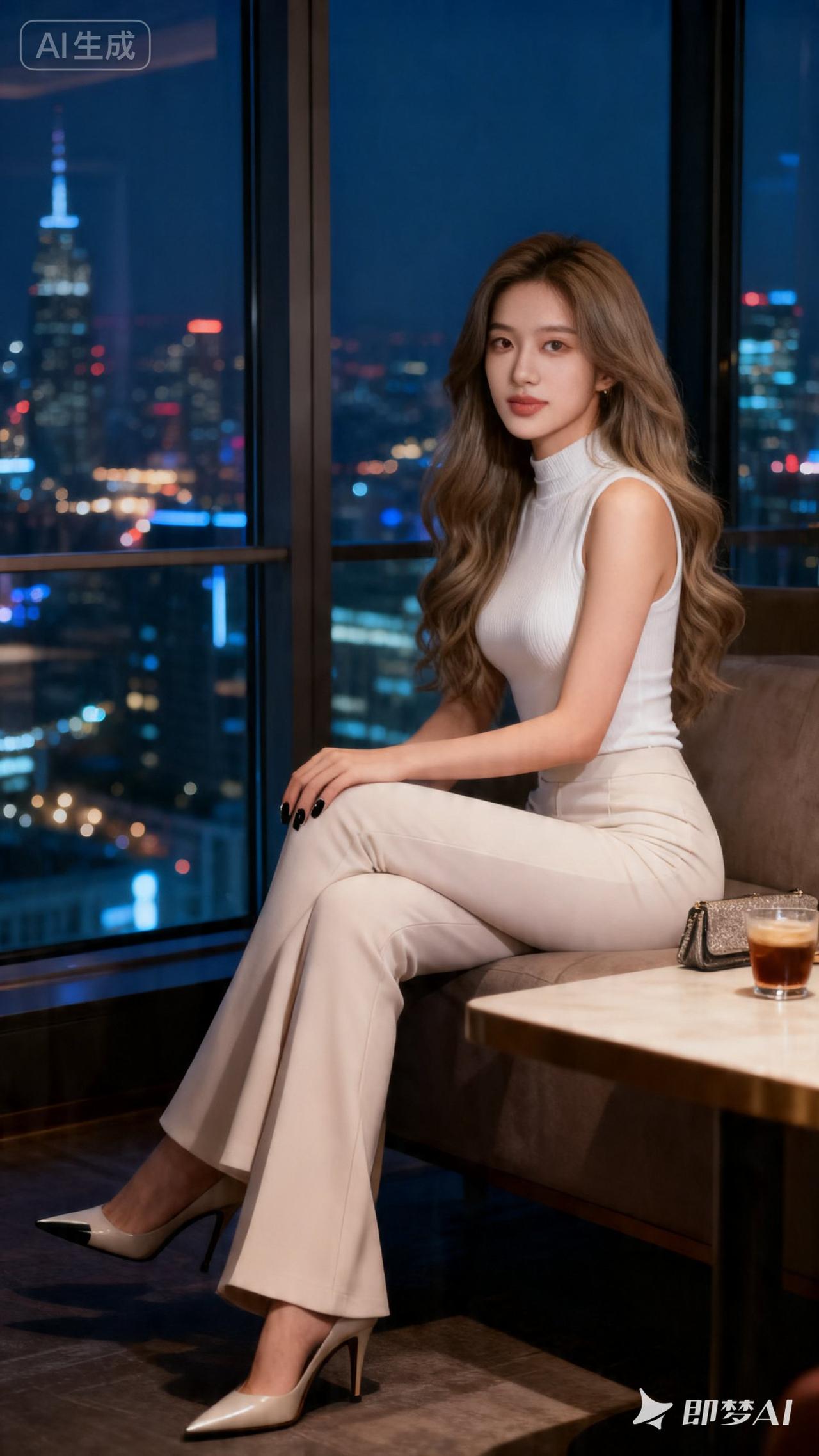 都市夜景下的优雅时光,时尚穿搭与城市夜景的完美融合。