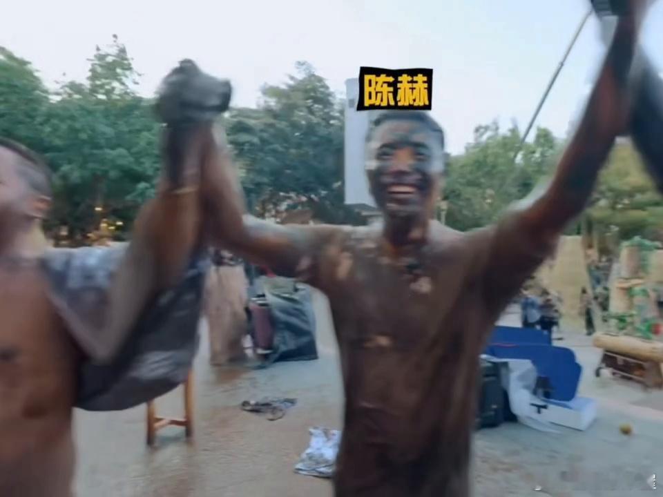 陈赫腰上长了个屁股哈哈哈哈哈笑不活了!陈赫这造型真·腰上长屁股,浑身是泥就算了还被抹一脸祝福,陈大小姐这福气谁不想要啊!