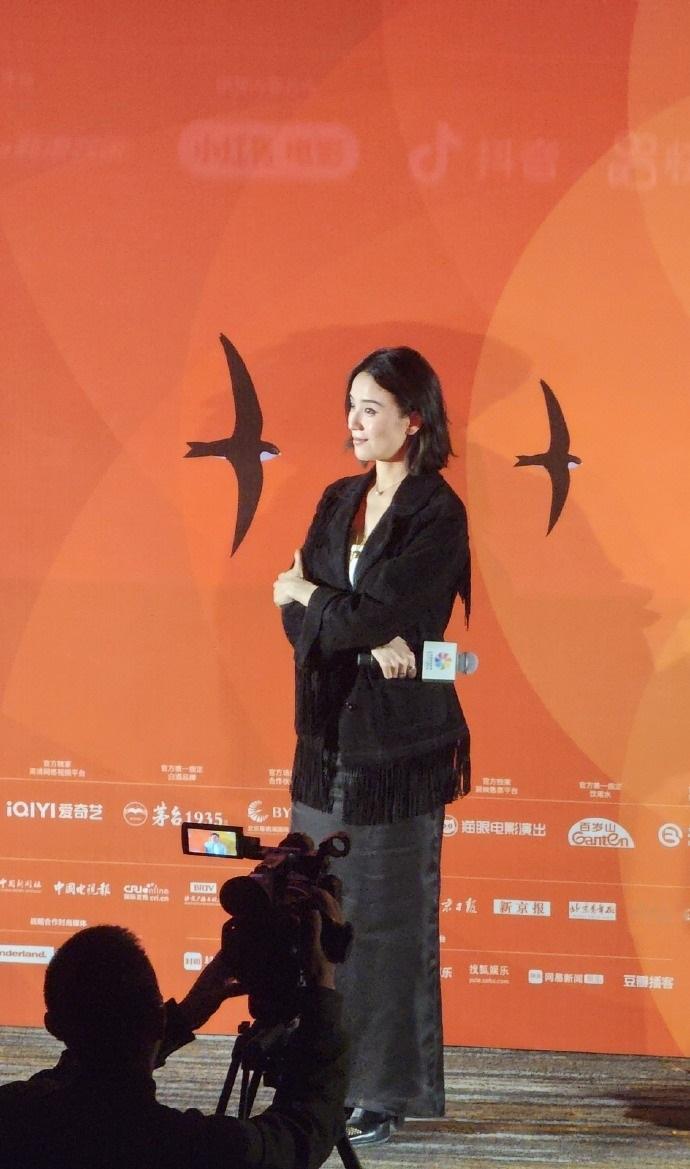 宋佳留着很有个性的发型,脖子上搭配了金色的吊坠,真的是很有国际大牌明星风采