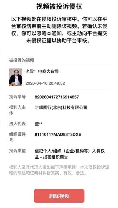 老梁在节目中评论董宇辉买假货事件,结果遭到大量投诉,包括董宇辉公司。最终老梁视频以版权问题被下架。董宇辉的表现让我想起了雷某军,总是对别人的差评耿耿于怀,只能听好话。作为一个企业的创始人,面对别人的评价,应该有则改之,无则加勉,而不是动不动就投诉甚至发起法律诉讼,对方只要没造谣,公众人物都应该大度一点接受别人的评判。