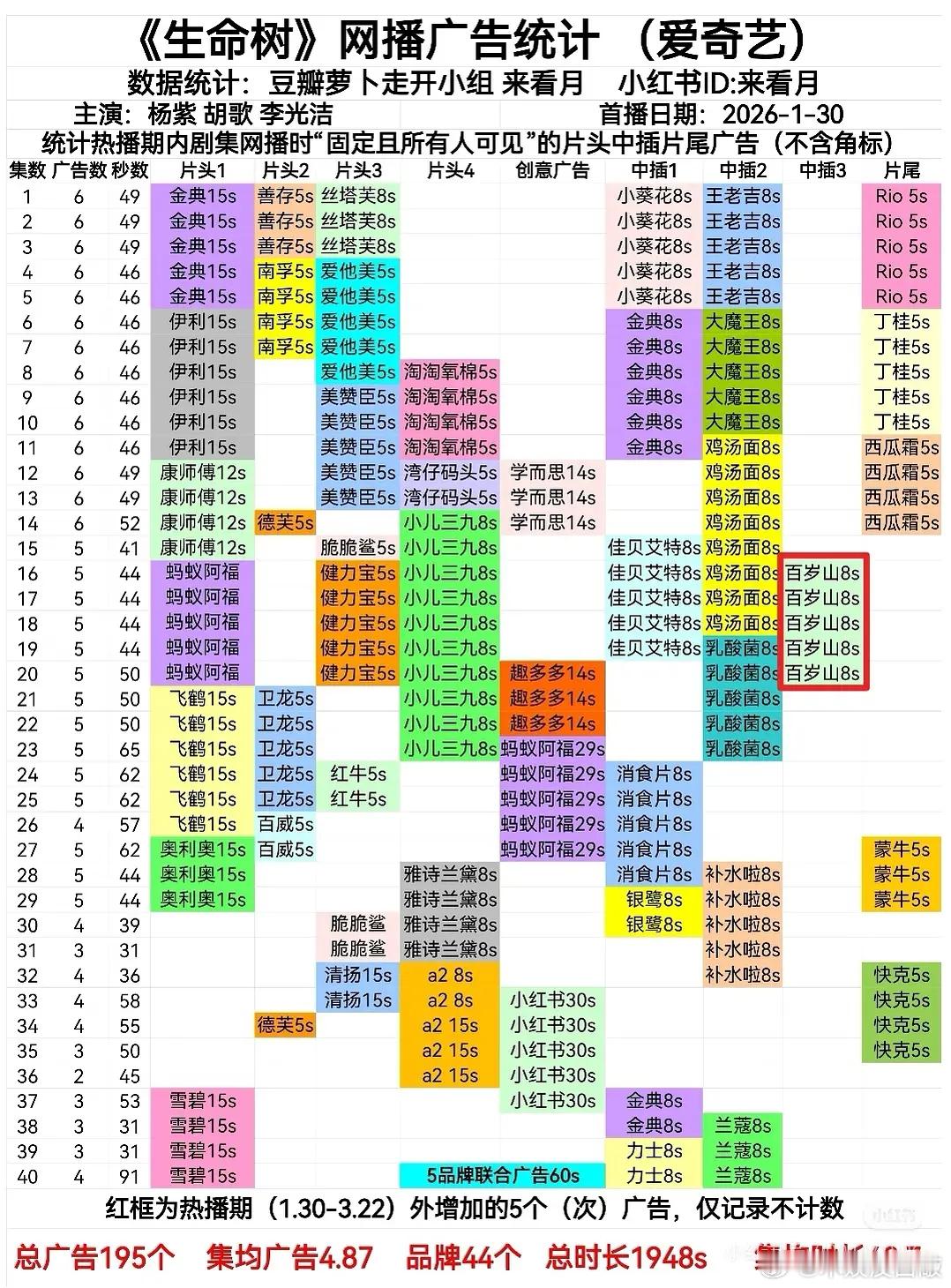 26年首部热播期后加广剧——生命树热播期结束后加广五集!长尾效应确实厉害杨幂生命