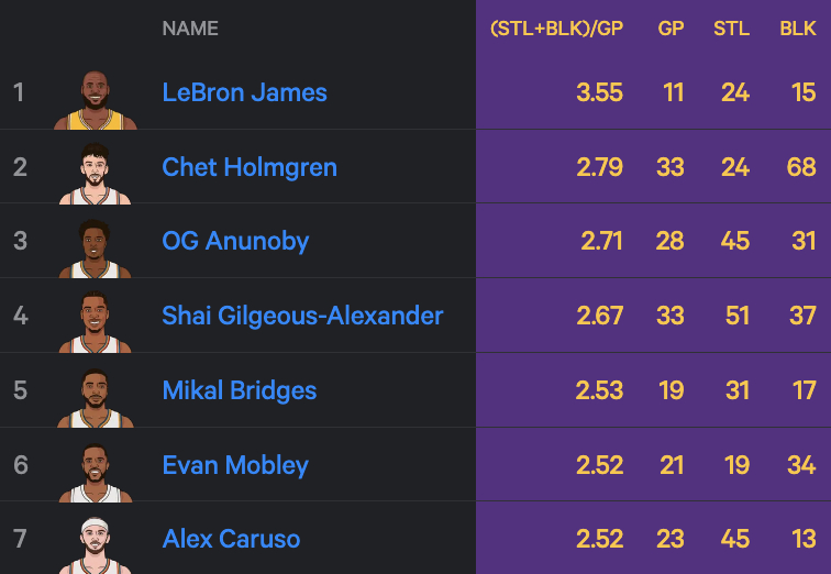 《詹姆斯不防守》最近三年至少打过10场季后赛的球员中,詹姆斯是场均抢断+盖帽最多