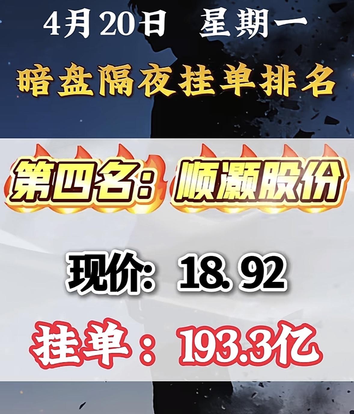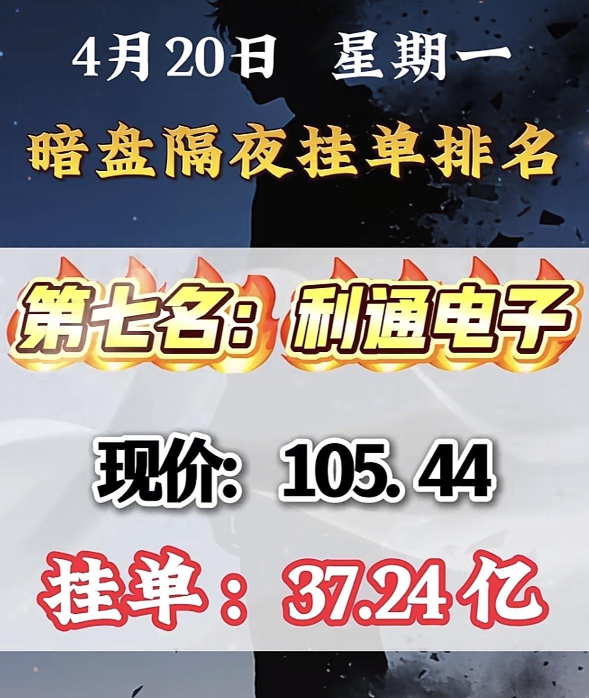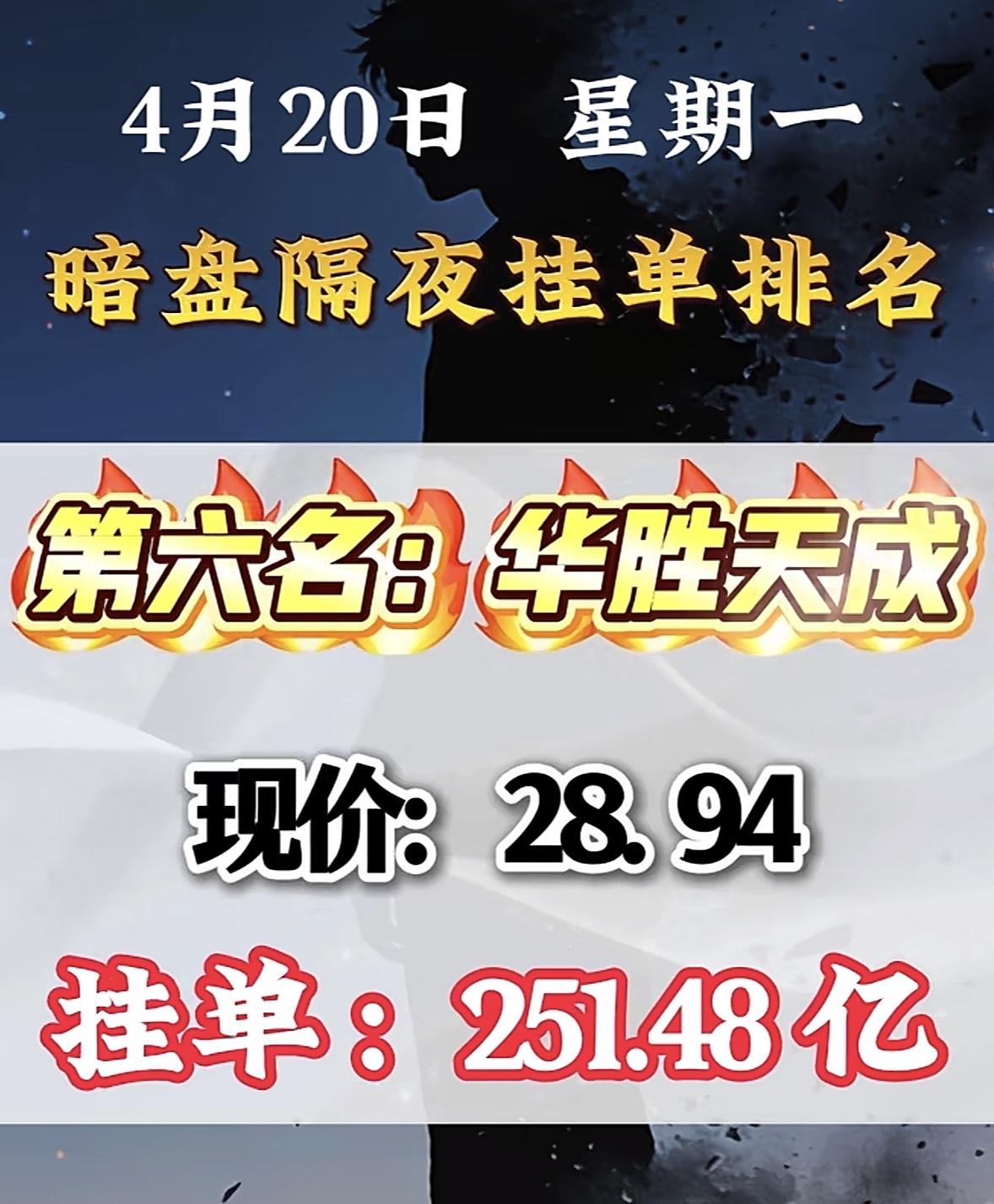 4月20日周一暗盘隔夜挂单排行榜揭晓