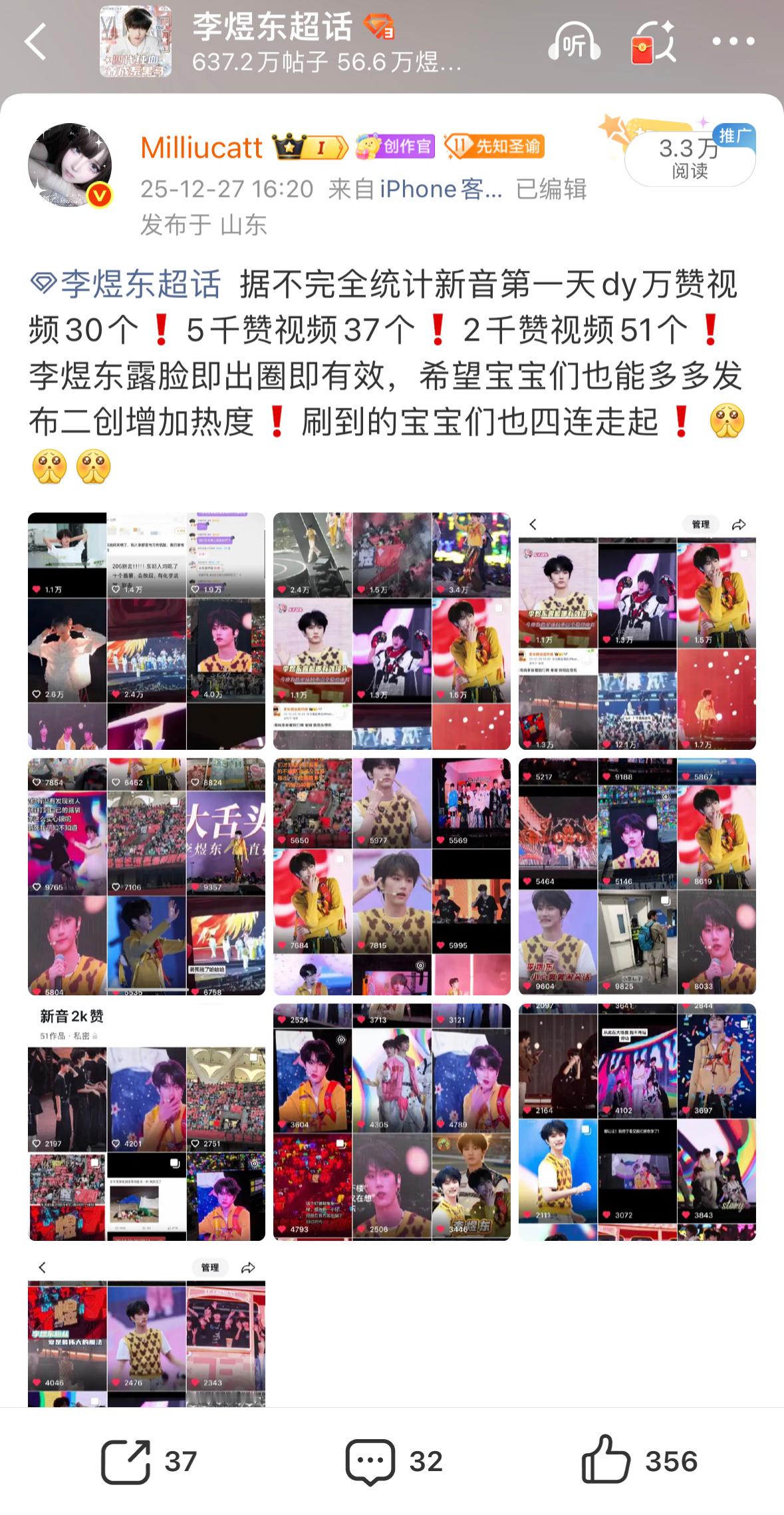 截止到目前为止据不完全统计二班见面会李煜东单人tag🫘万赞视频86个(已去除素人相关视频)❗️可以看一下和去年新音同时间的增长对比,我们真的进步了好多,当之无愧的热度王🥹🤏