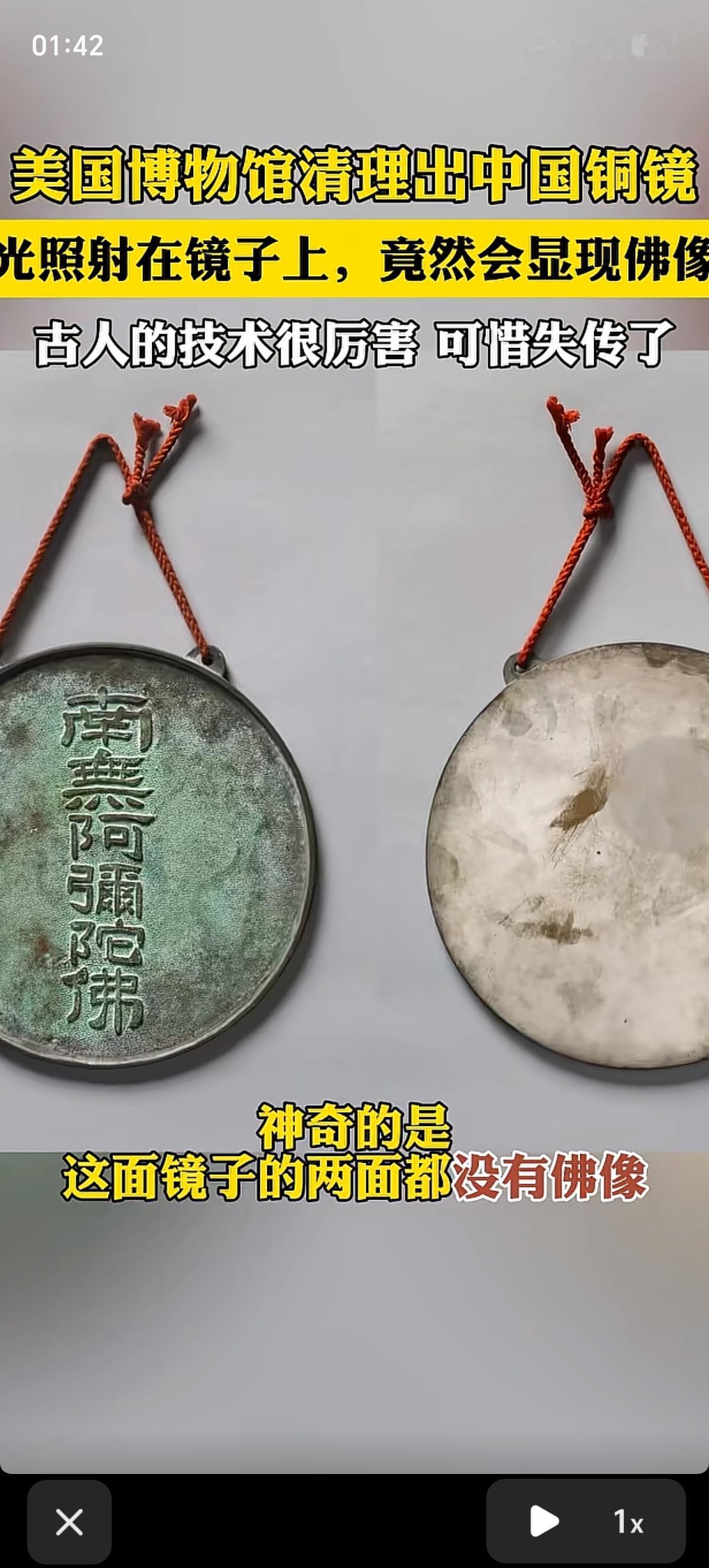 第一次这么近距离的看古代的铜镜,可惜光照在铜镜上会显现出佛像的奇景不能穿过屏幕看,只能去美国博物馆看。铜镜上正反两面只有“南無阿彌陀佛”六个字,并没有佛像图案,不得不感叹古人的智慧。