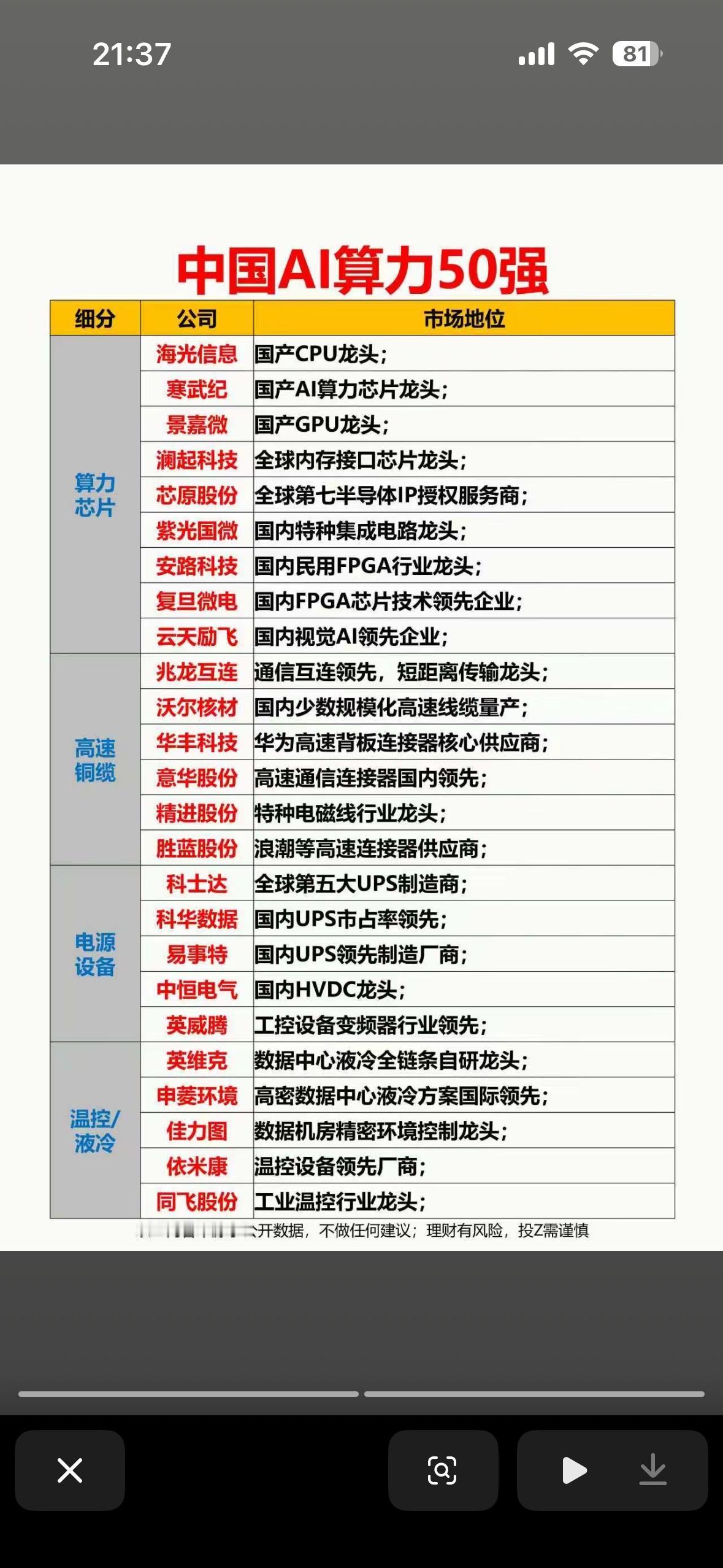 从细分领域看,算力芯片里,寒武纪思元370比肩A100;海光信息深算二号DCU受央企青睐。AI服务器方面,浪潮信息全球市占率第一,产能扩增300%。这些企业展现了中国AI算力的强大实力,未来值得期待!