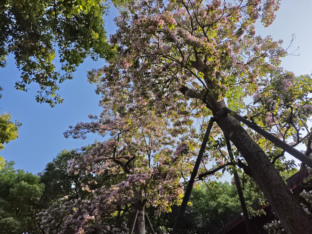 双休日我来到杭州吴山东岳庙看到人潮涌动,原来是2棵537岁楸树开花了,而且今年花开得很茂盛。