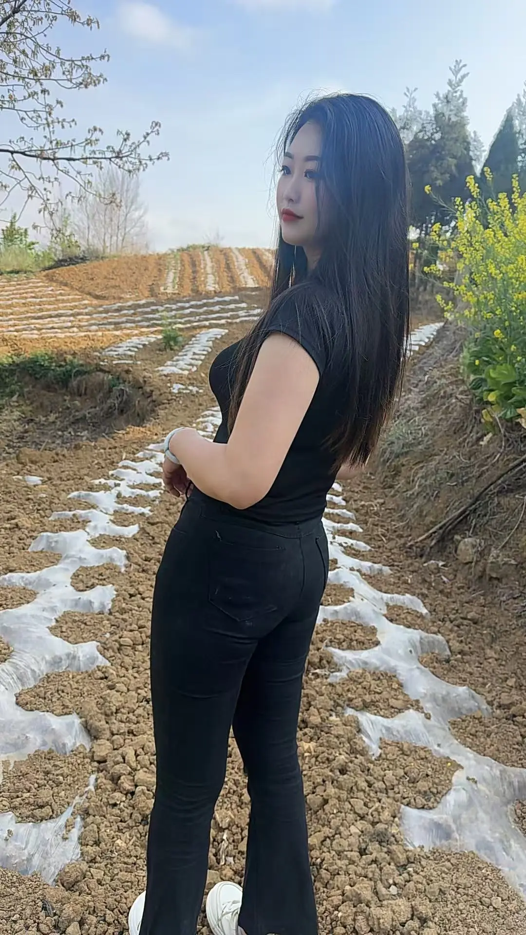 随拍 紧身牛仔裤 农村