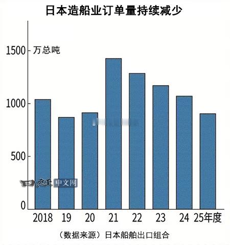 日本政府提出的造船量倍增计划正笼罩阴影。2025年度的订单量比2024年度减少15%,连续4年减少。高市早苗政府将造船列为17个战略领域之一。从经济安全保障的观点等来看,也必须要提高日本国内建造能力。日本政府提出2035年国内建造量比2024年增加近一倍、达到1800万总吨的目标。