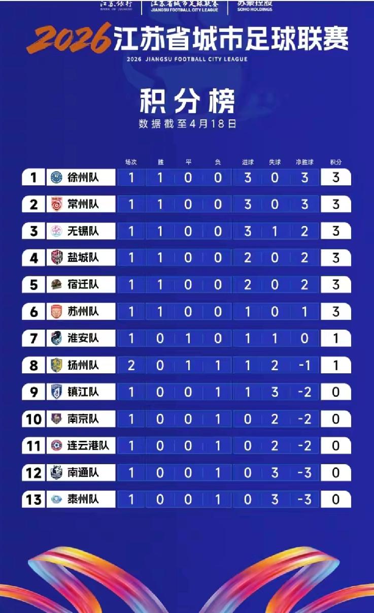2026苏超首轮积分排序泰州提质疑——同为0:3为啥垫底?引发“苏迷”对排名规则的大讨论