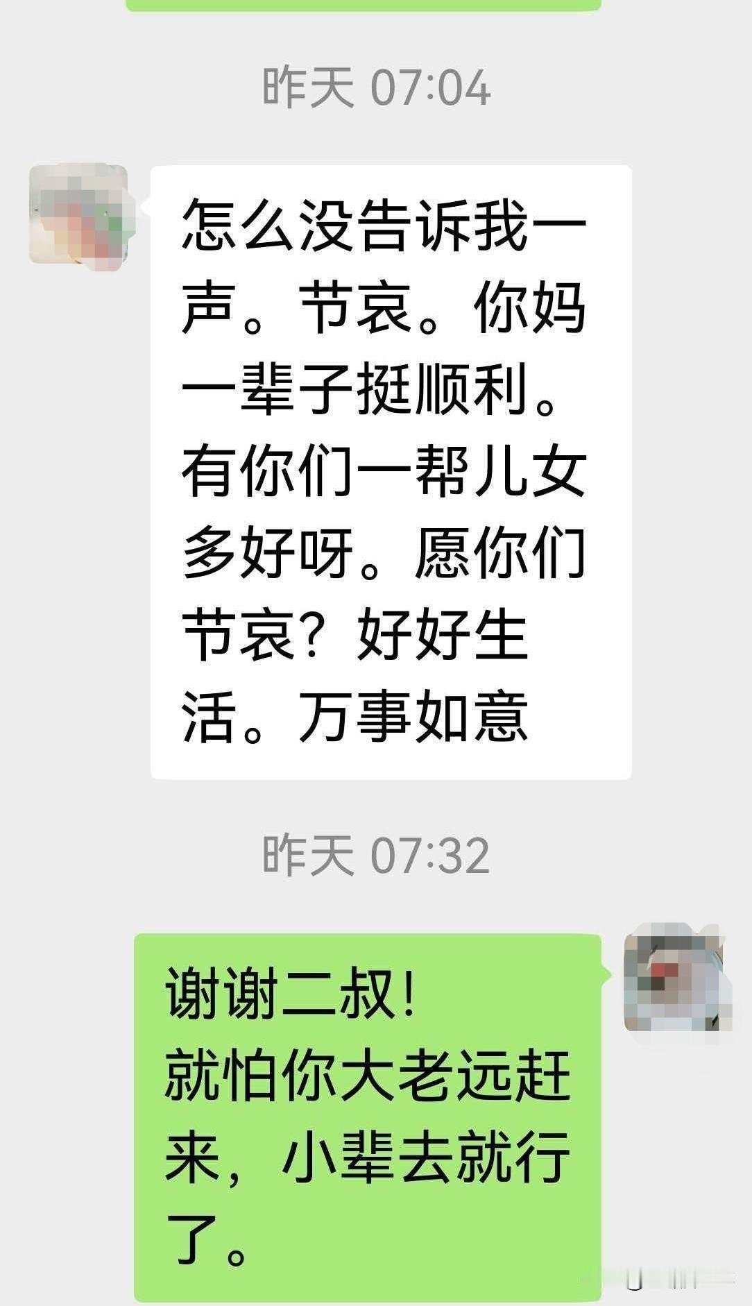 我妈去世的消息,我只告诉了几家同辈的亲戚,岁数大的,外地的,各个时期的朋友一个也没告诉。