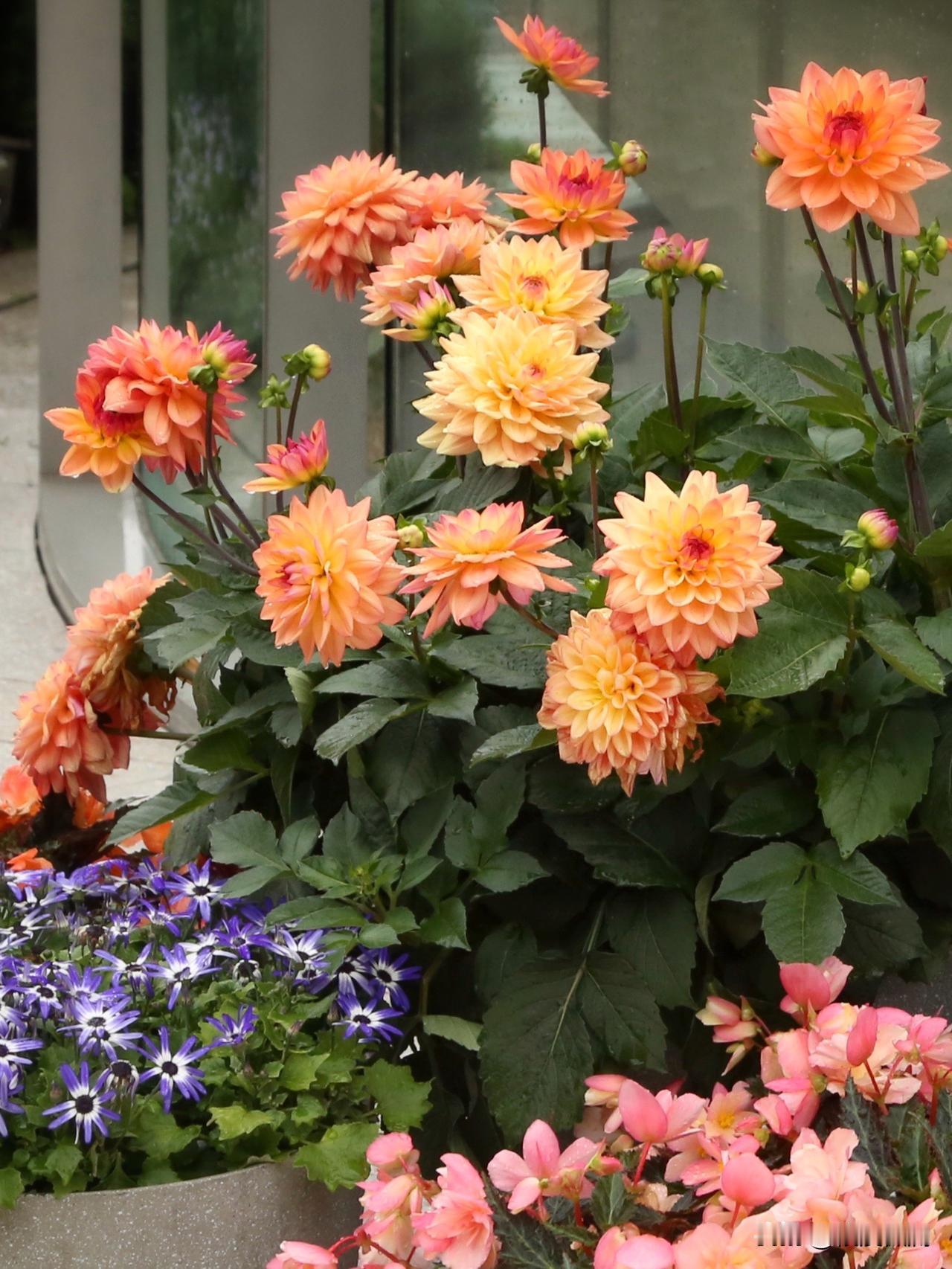 四月的上海,几个地标性区域都成了花的海洋,在苏河湾华润万象天地的绿地上,有许多盆栽大丽花点缀环境,非常漂亮养眼。