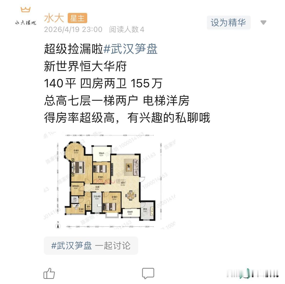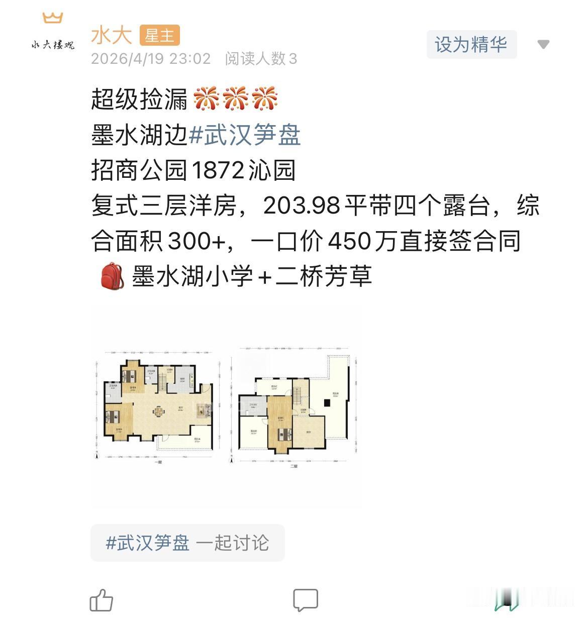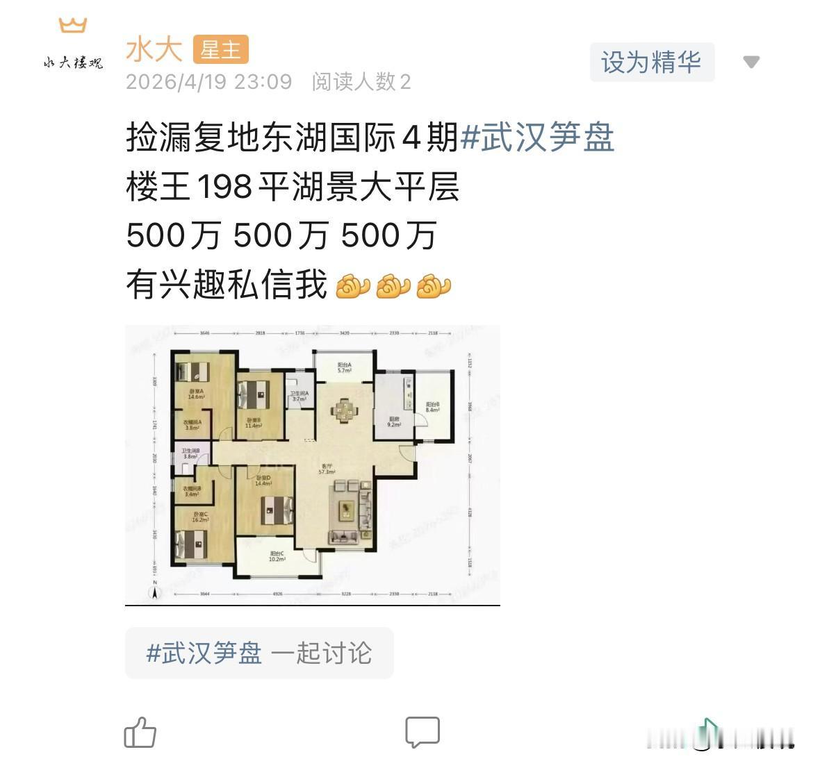 4.复地东湖国际这样的好户型,去年到今年爹了不少,前年是小户型在爹,大户型挺着,但是现在大户型一样了。