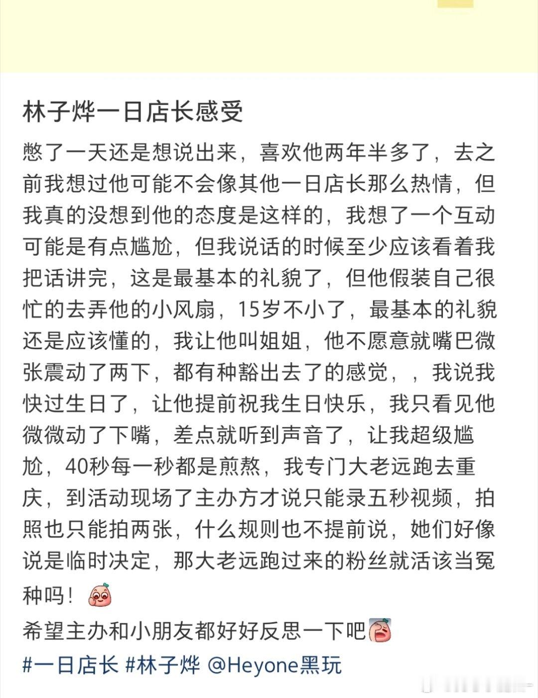 林子烨大面积粉丝脱粉回踩,一日店长态度敷衍,没礼貌,小小年纪已经飘了吗?