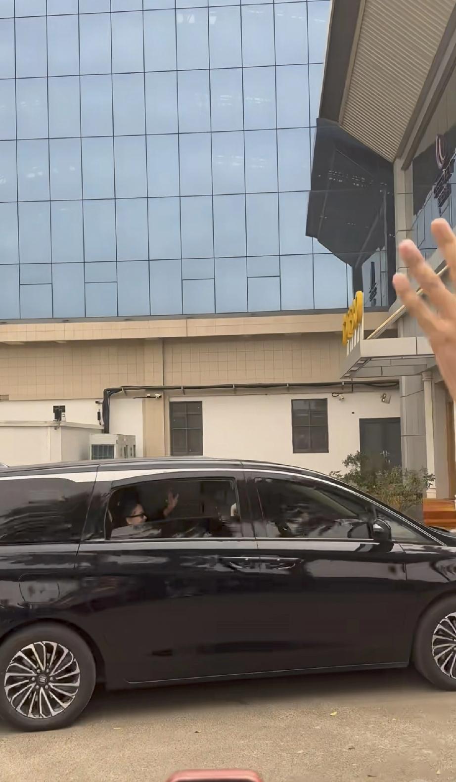 周杰伦老远就摇下车窗跟粉丝打招呼,后面准备进大厅了,周杰伦从专车出来,还戴着口罩,继续伸手跟粉丝说再见。